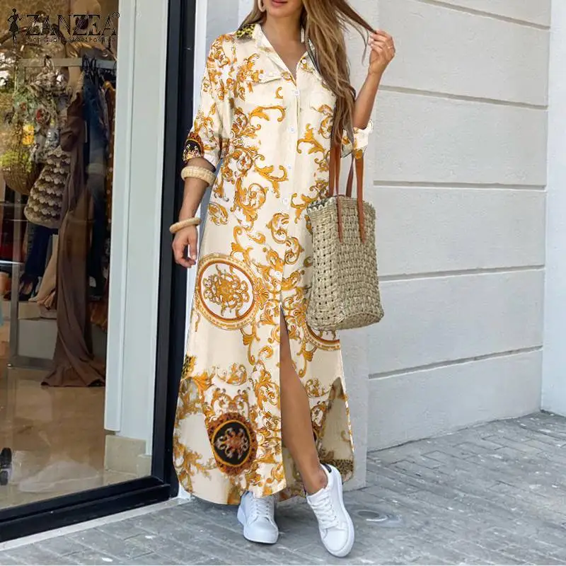 ZANZEA Bohemian Printed Women Shirt Dress 2023 Spring Autumn Long Sleeve Maxi Dresses Casual Lady OL Lapel Oversize Party Robe 7