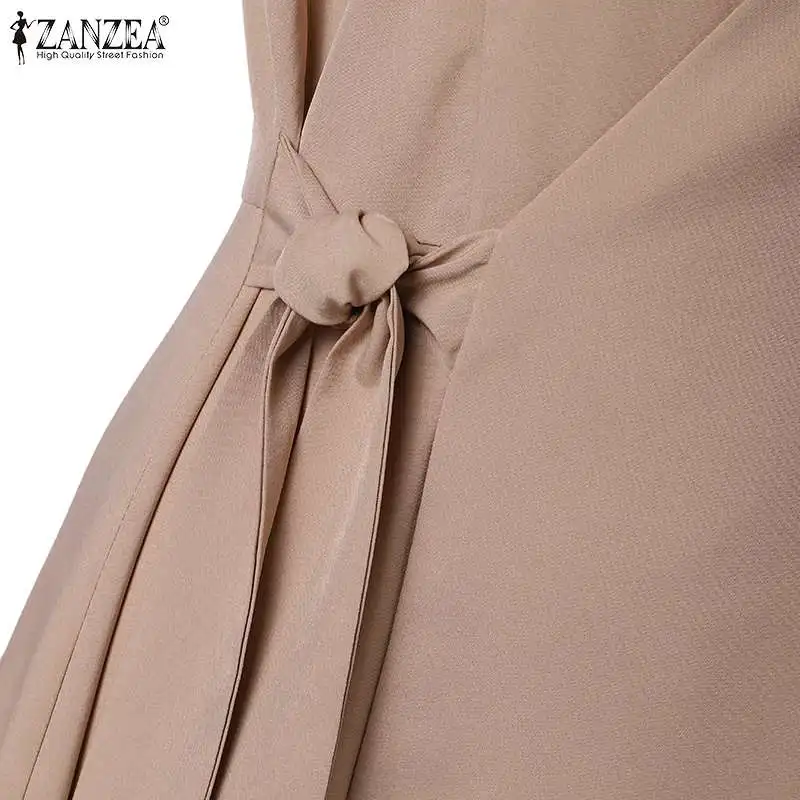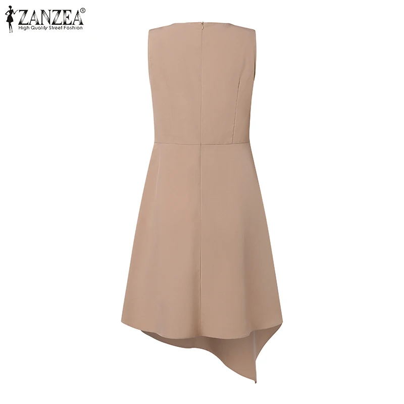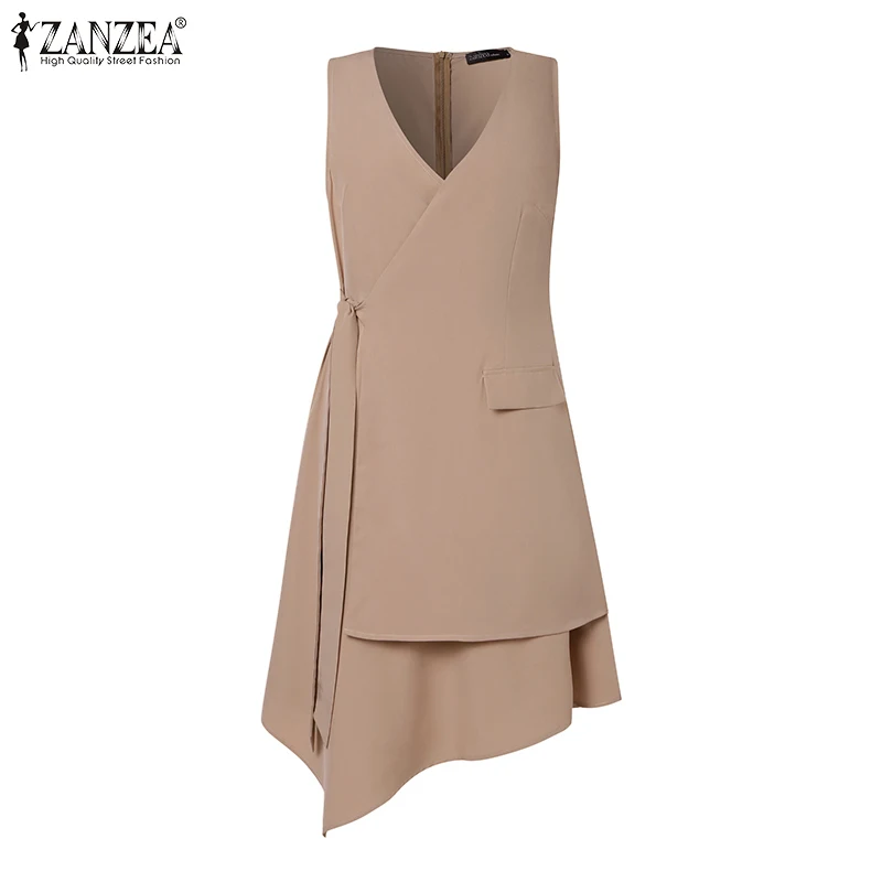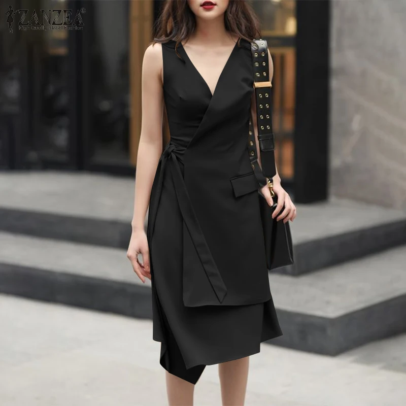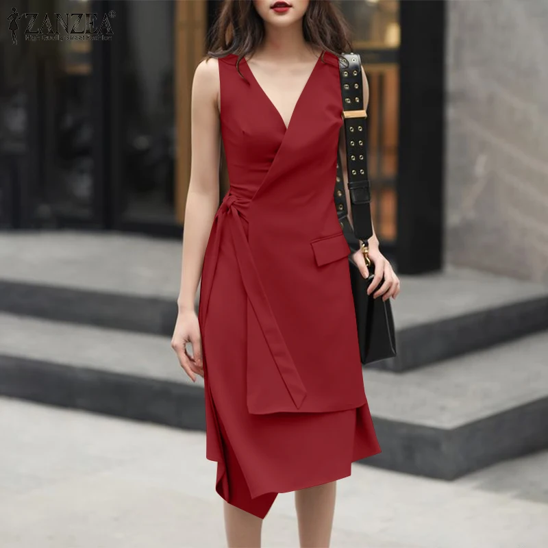 ZANZEA Stylish Solid Office OL Dress Summer Sundress Elegant Women V Neck Sleeveless Dress Party Robe Femme Work Beach Vestidos