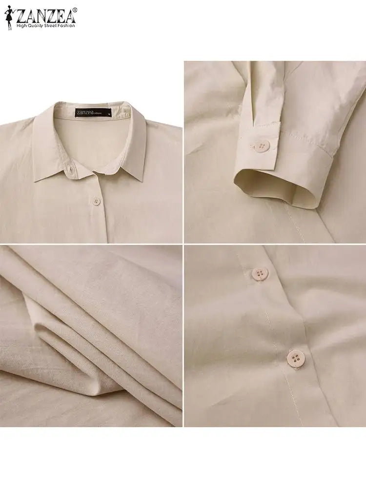 ZANZEA Women Autumn Sundress Elegant Long Shirt Dress Lapel Neck Long Sleeve Solid Vestido Casual Loose Work Dresses Robe Femme