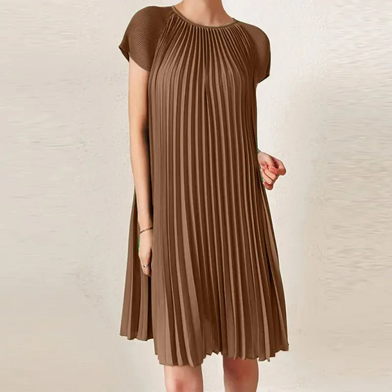 ZANZEA Women Party Elegant Sundress Summer Dress 2024 Fashion Short Sleeve O-Neck Pleated Casual Solid Color Mini Vestidos Robe