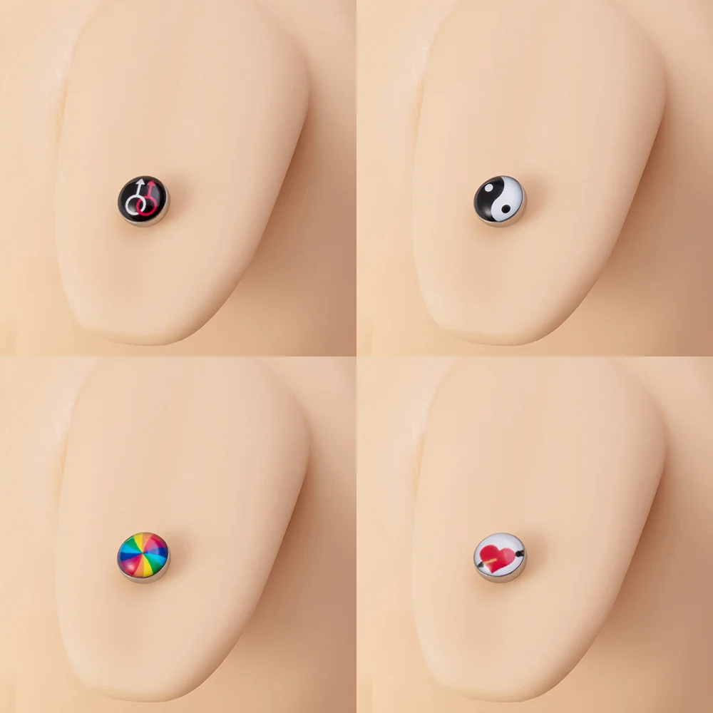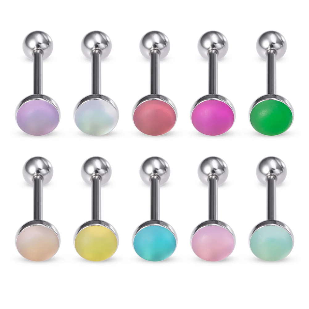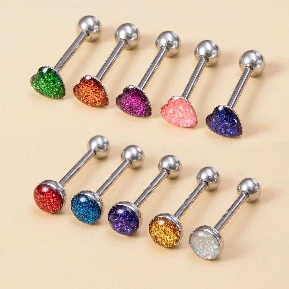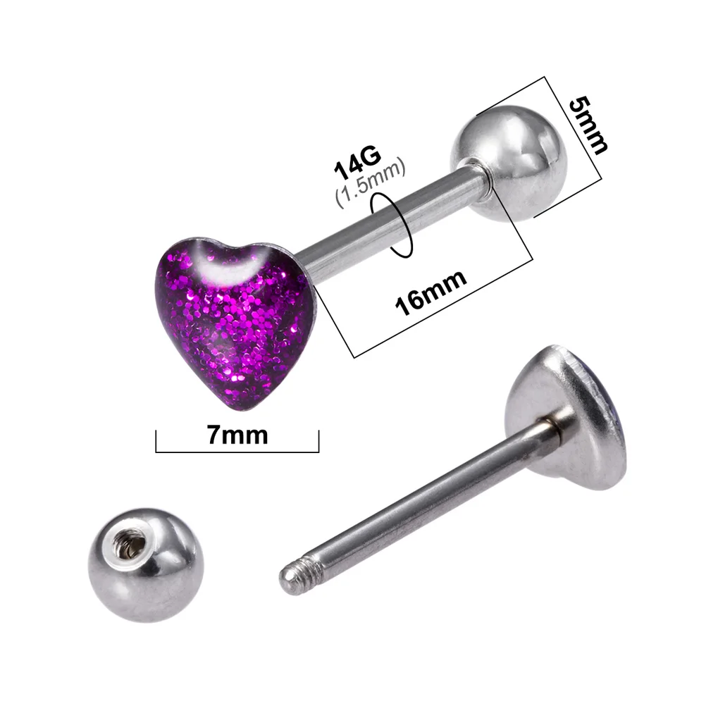 1pc 14G Sexy Tongue Piercings Jewelry Heart Round Tongue Ring Piercing Barbell for Women Men Acrylic Flat Top Surgical Steel Bar