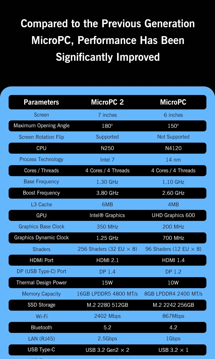2025 New GPD MicroPC 2 7Inches Mini Industry Laptop Intel® Core™ i3-N300 16GB/512GB Windows 11 Portable Computer Notebook
