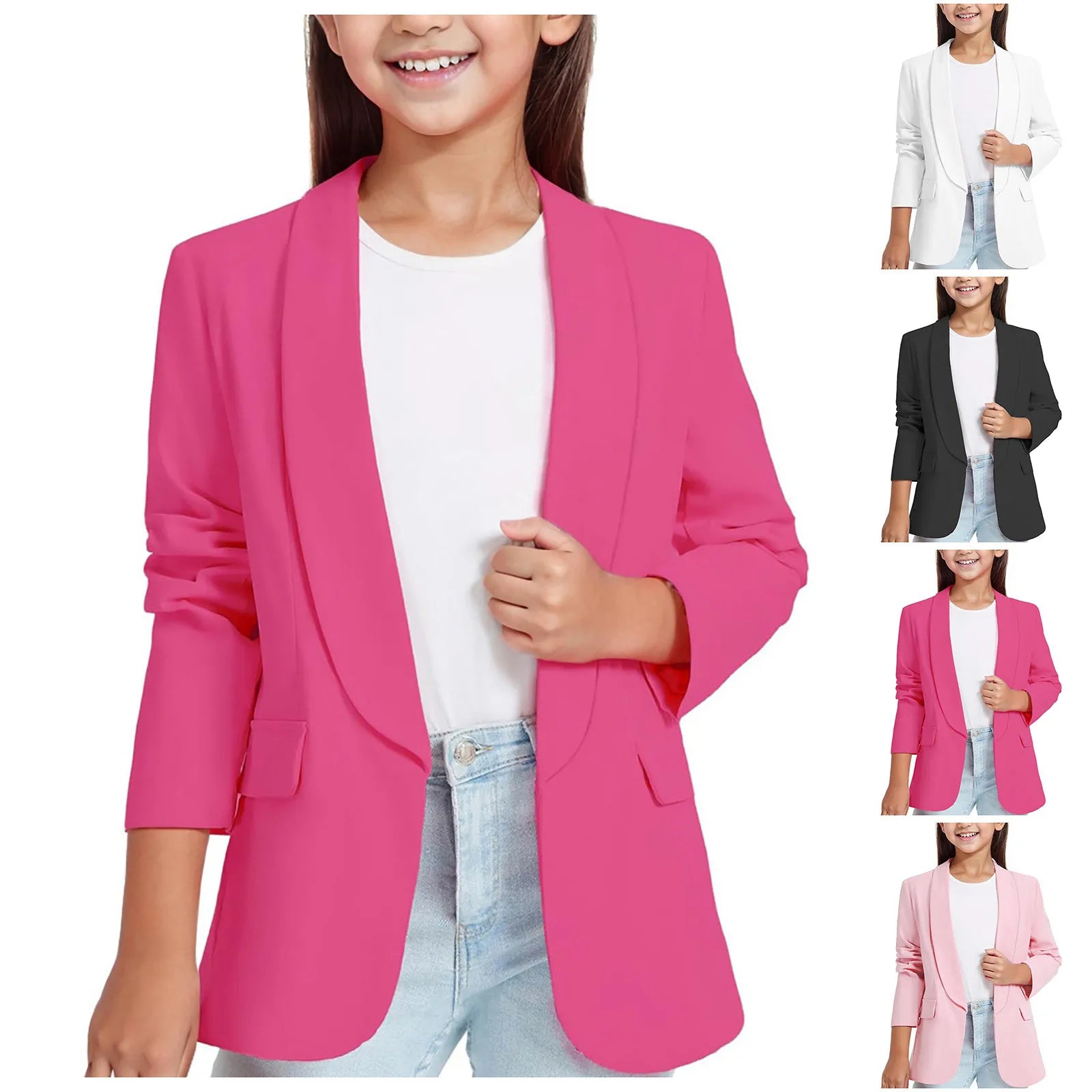 Girls Blazerss Long Sleeve Shawl Collarss Formal Blazerss Suit Jacket Open Front Inner Pocket For Kids