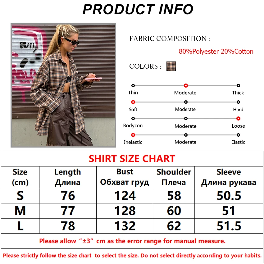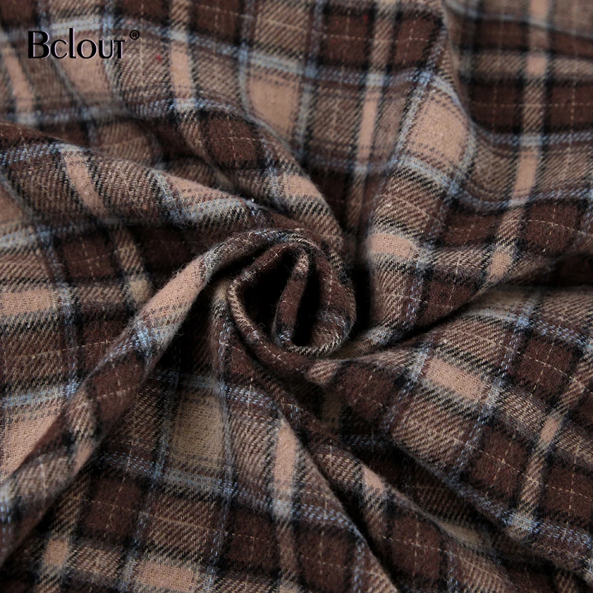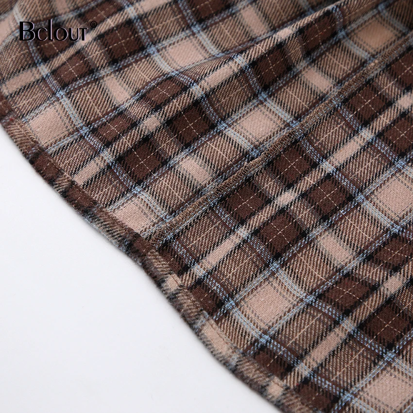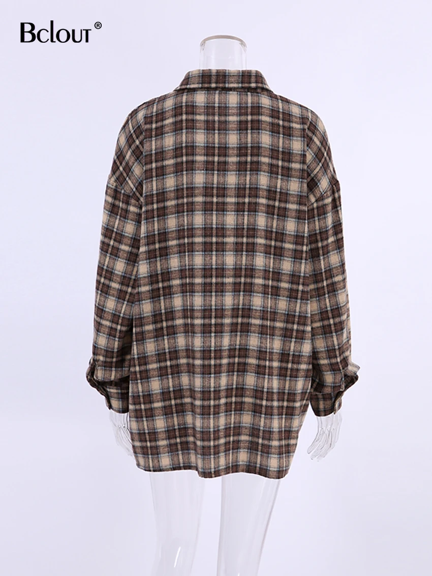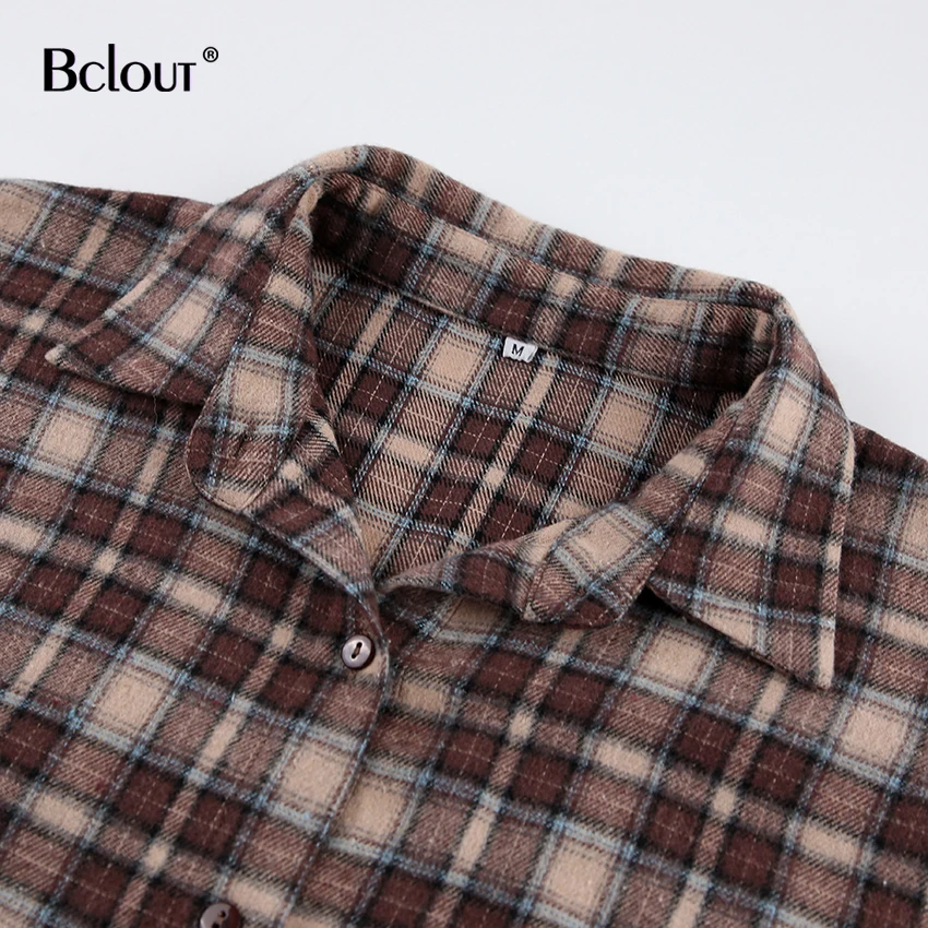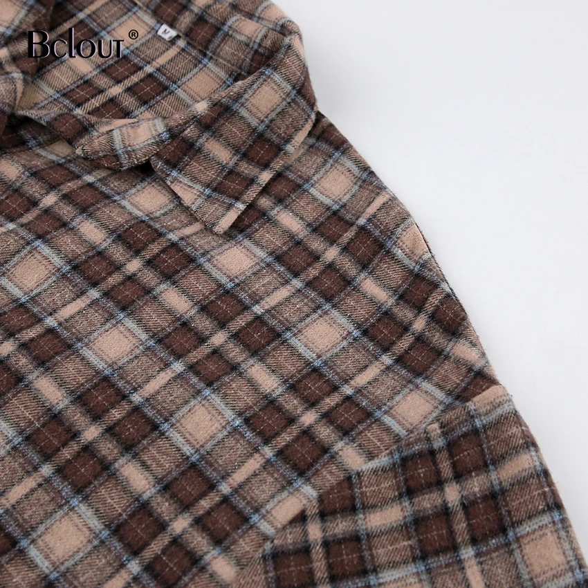 Bclout Fashion Brown Plaid Blouses Women 2024 Streetwear Long Sleeve Loose Shirts Casual Turn Down Collar Office Lady Plaid Tops