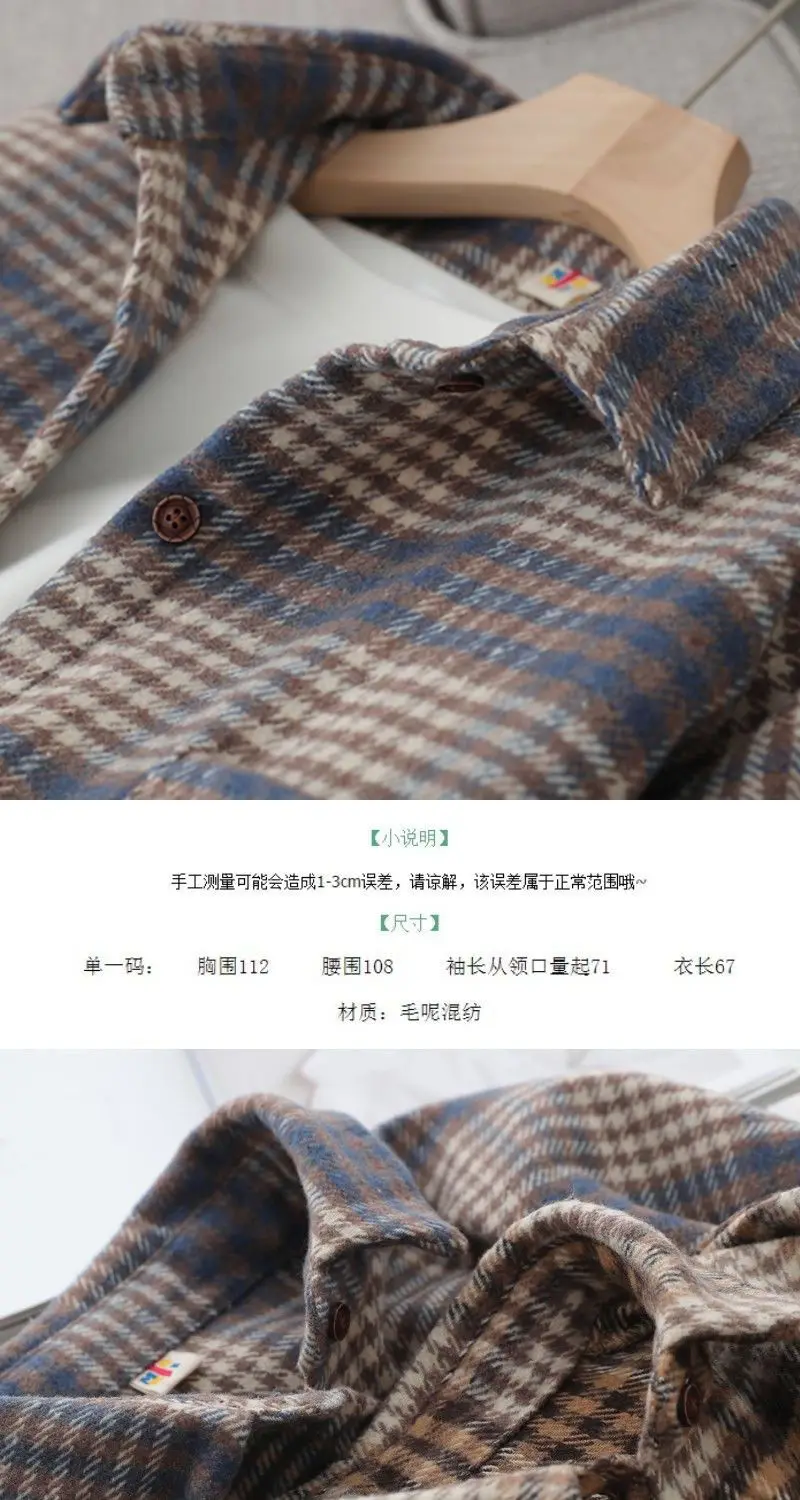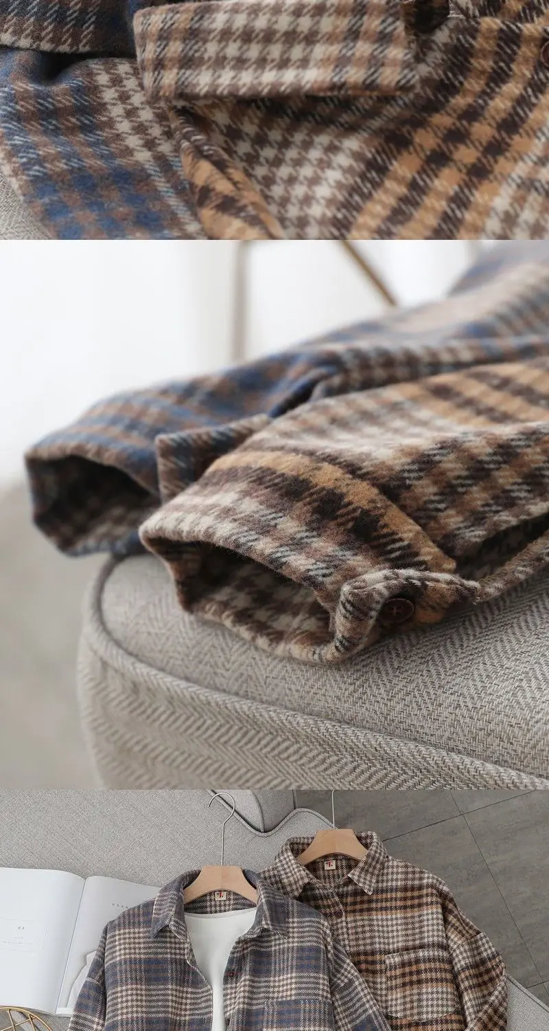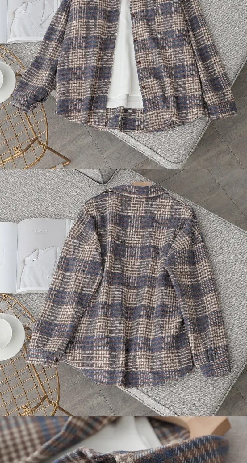 Blouse Women Shirt Retro Winter New Loose Woolen Coat Women's Long-Sleeved Plaid Shirt Blusas Ropa De Mujer