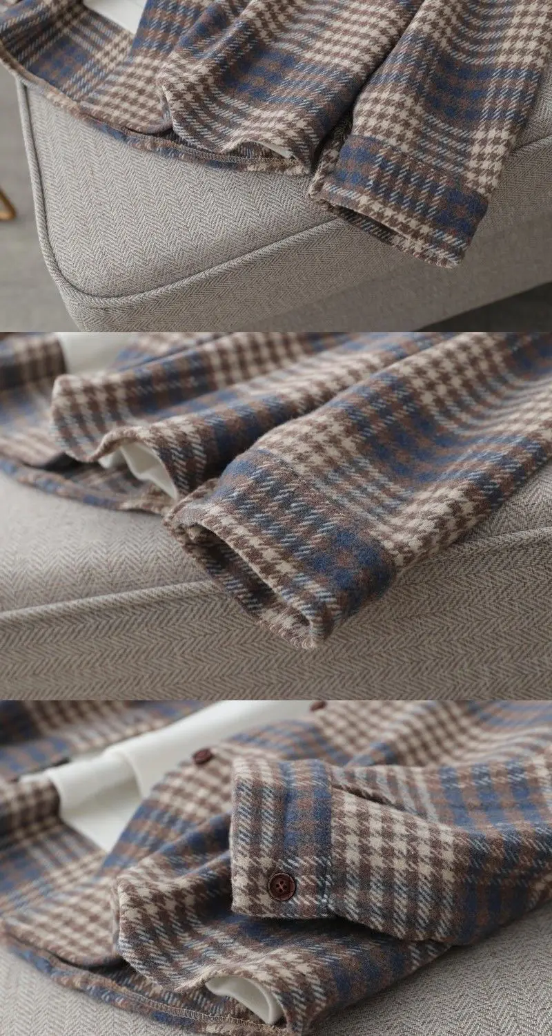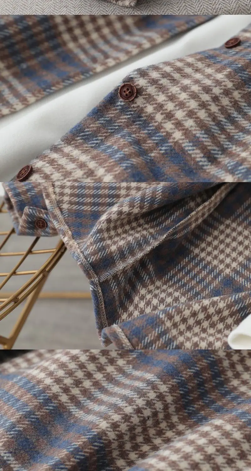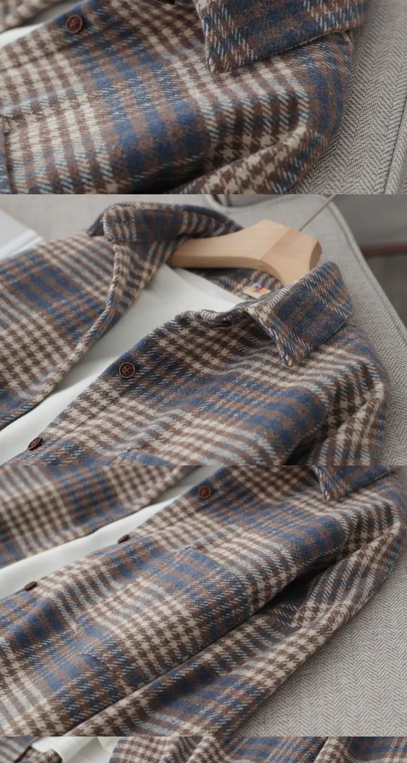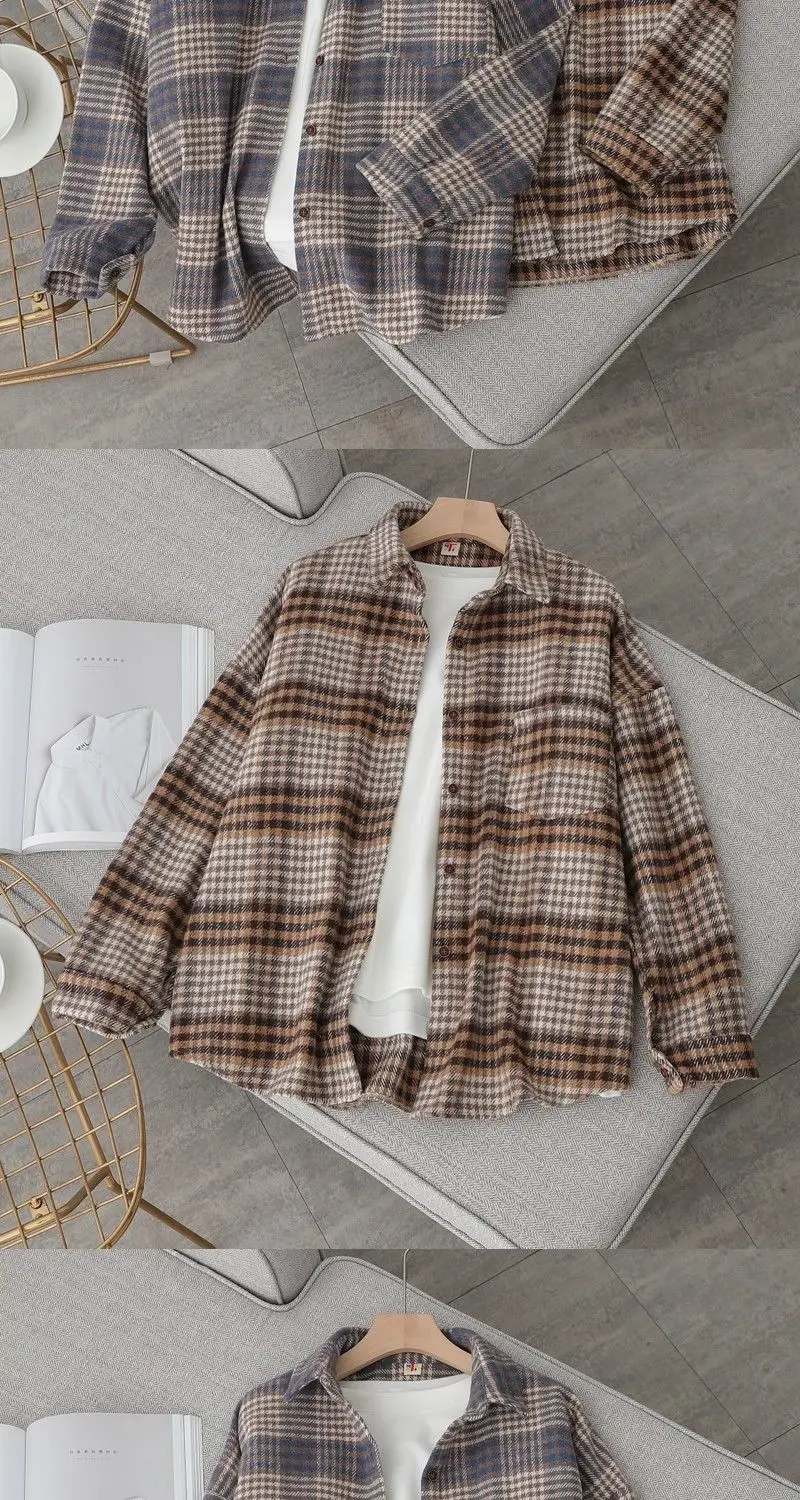 Blouse Women Shirt Retro Winter New Loose Woolen Coat Women's Long-Sleeved Plaid Shirt Blusas Ropa De Mujer