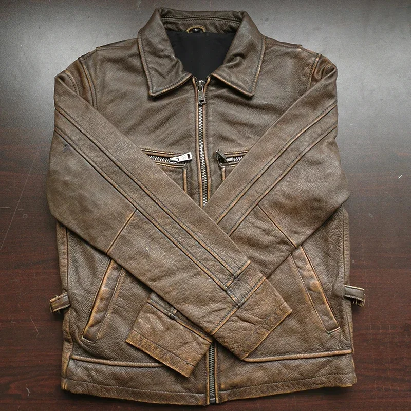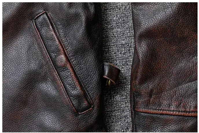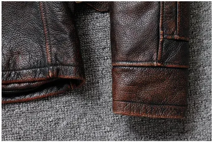 Classic Men Cowhide Coat Natural 's Genuine Leather Jacket Vintage Style Real Clothes Clothing Calf Skin