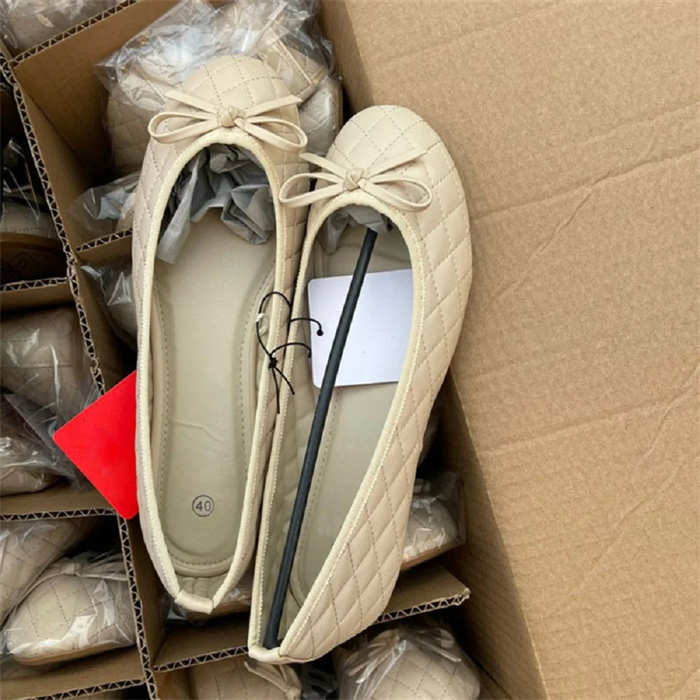 Elegant Bowknot Ballerina Women's Flat Round Toe Comfort Slip-On Ladies Loafers Leather Single Mules Shoes