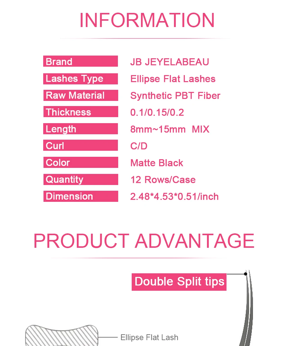 Goddess Ellipse Flat Lashes Soft Split-tips Fake Eyelash Extension Individual Eyelashes Nature Flat Ellipse Eyelashes Supplies