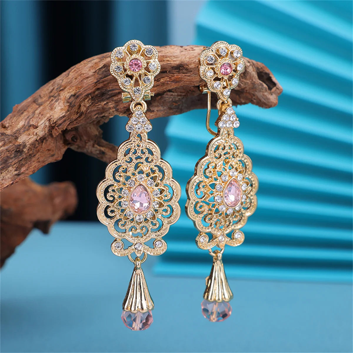 Light Luxury Set Drop Gemstone Cutout Design Earrings Moroccan Girls Gold-Plated Earrings Pendant Bride Wedding jewelry