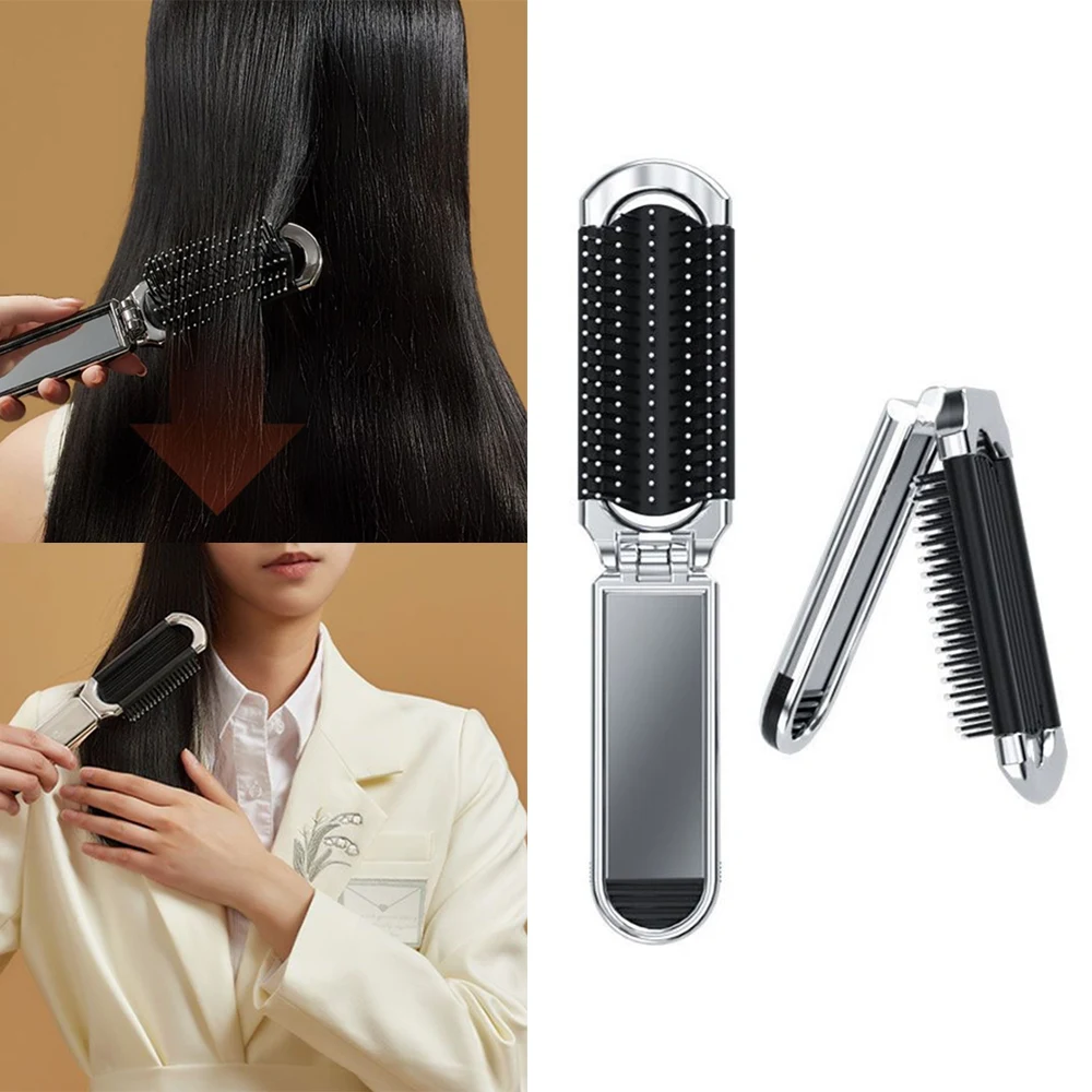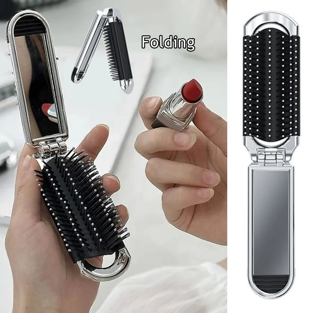 Mini Folding Hair Brush With Mirror Women Travel Hair Comb Pocket Size Portable Massage Comb Girls Hair Styling Accessories