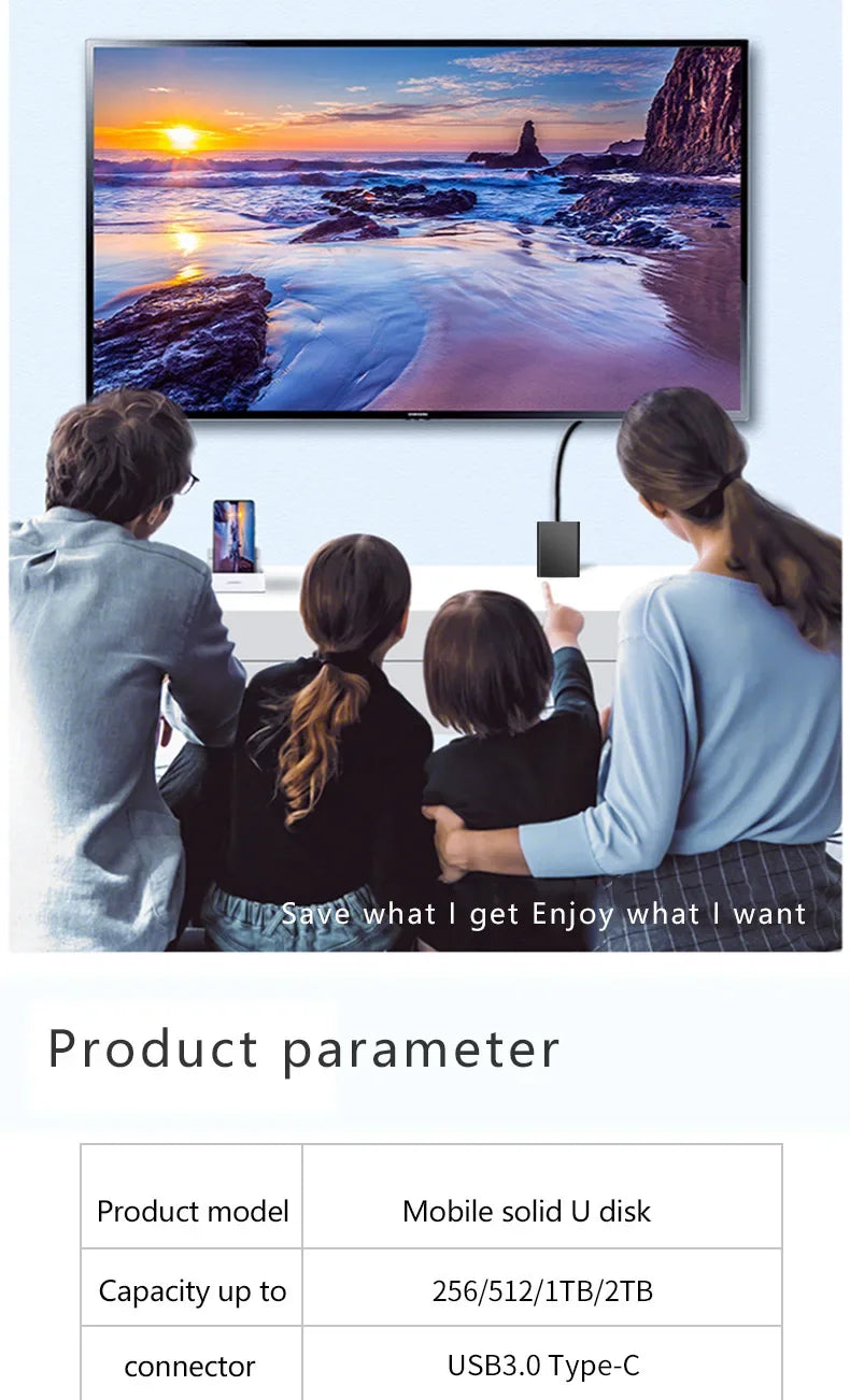 Portable SSD 1TB External Hard Drive High-speed Mobile Solid State Drive External Storage Decives Hard Disks for PC/ Mac