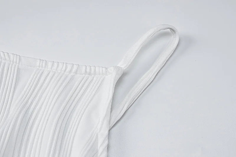 Women's Long Ruched Dress Sleeveless Slim Monochromatic Party Back Split Clubwear Female Outfits Summer Sexy 2024