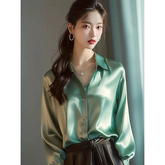Women Spring Simplicity Office Lady Solid Color Turn-down Collar Long Sleeve Shirts Women Clothes Casual All-match Elegant Tops
