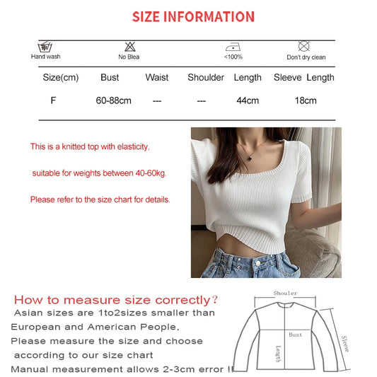 Women Summer Square Collar Solid Casual Top Beach Short Sleeve Knitted Crop Tops Striped Slim Y2K Shirts Tee Spring