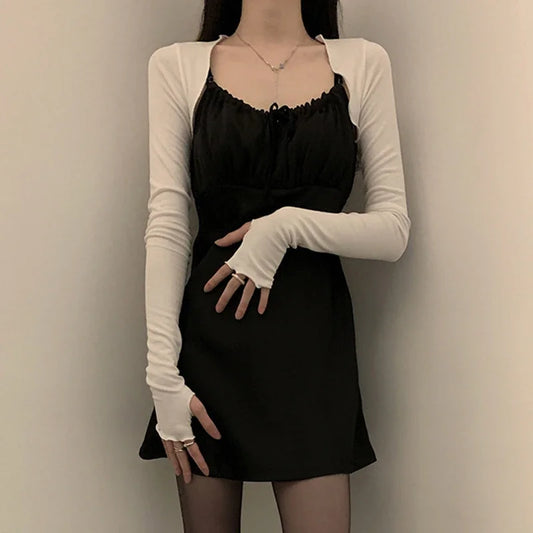 Women Thumbhole Long Sleeve Shrug Solid Color Open Front Cropped Cardigan Top Bodycon Slim Fit Sunscreen Arm Cover Jacket Gloves