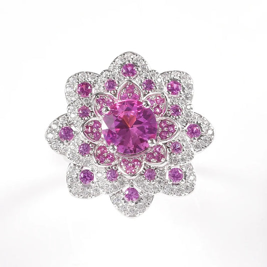 lotus fun Handmade silver jewelry two-tone flower shape gold ring design fine jewelry for women