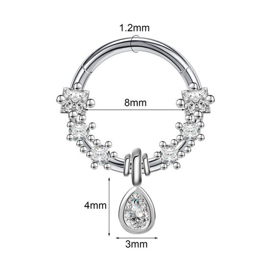 Women's Stainless Steel Dropper Zircon Nose Ring