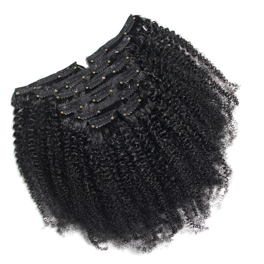 customized 120g/set virgin Brazilian afro kinky curly human hair clips in hair for black women,afro kinky 4a 4b 4c hair clip ins
