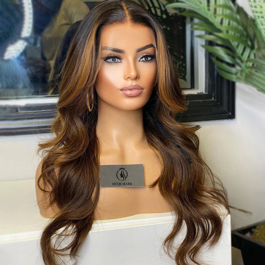 13x4 Blonde Highlights Frontal Wig Brown Highlighted Human Hair Lace Wigs Deep Wave Curly Highlight Lace Front Wig