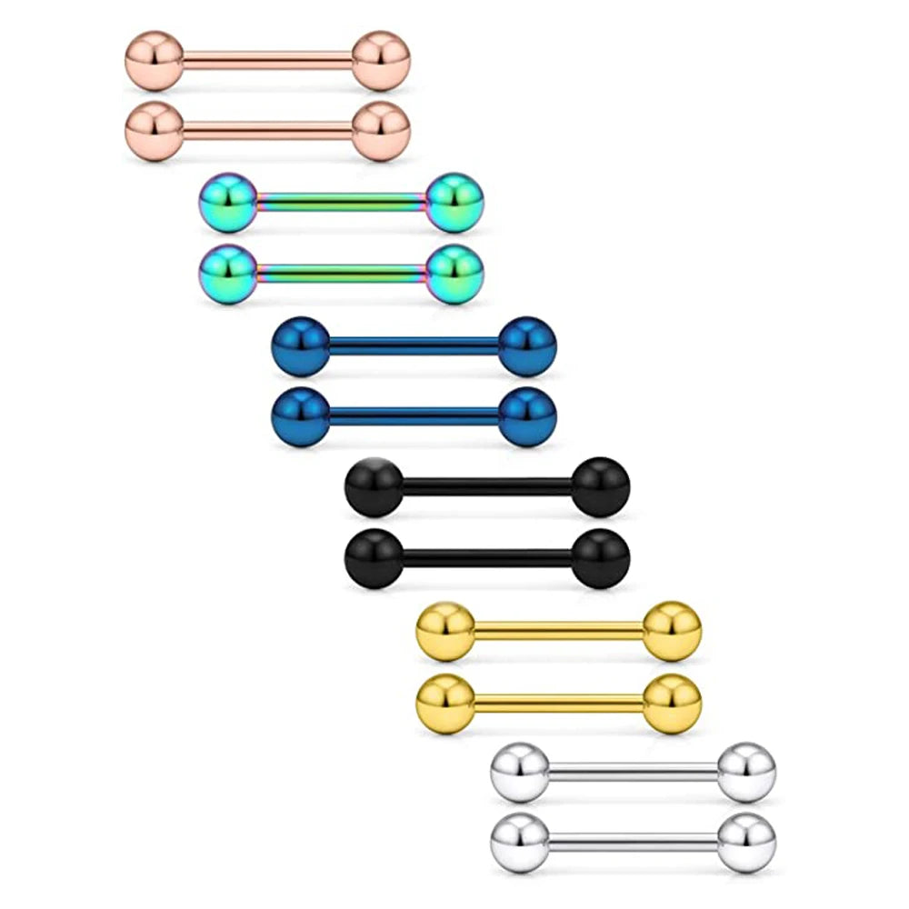 SHORT BAR: Gauge (Size): 12G (2.0mm), Thicker Than Normal Size; Bar Length: 1/2"(16mm); Ball Dia.: 5mm