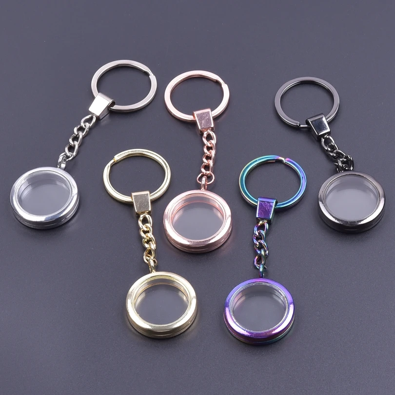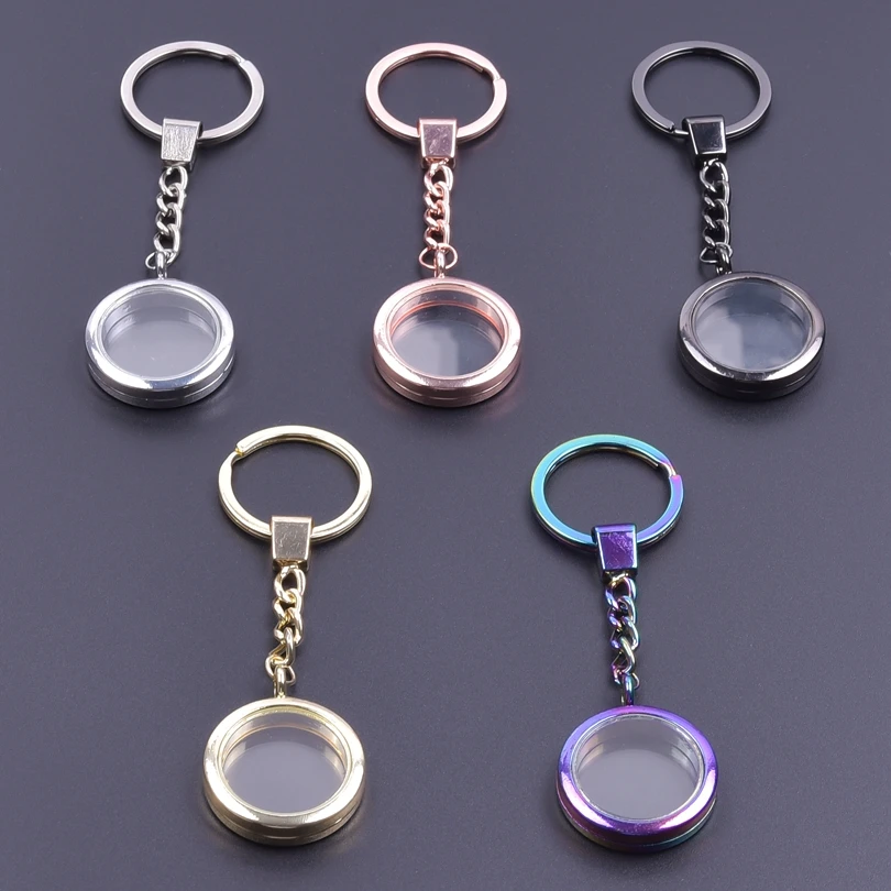 1Pc Outer Size 25-40mm Round Glass Photo Locket Pendant Keychain Diy Coin Holder Floating Relicario подвеска Keyring Jewelry