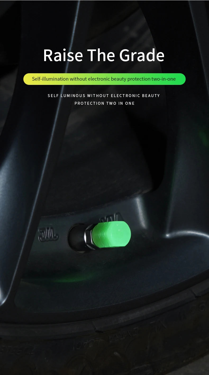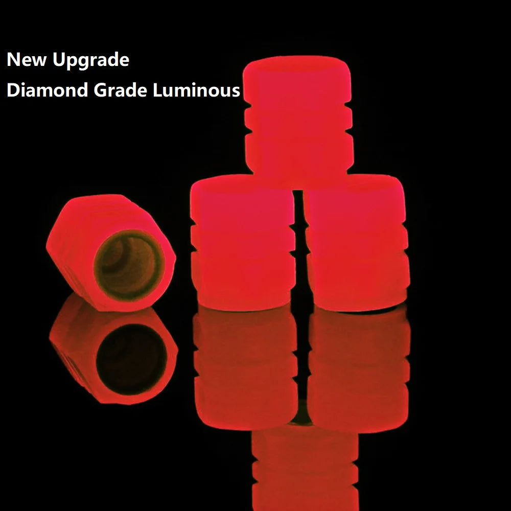4pcs Luminous Valve Caps Fluorescent Night Glowing Car Motorcycle Bicycle Bike Wheel Tyre Hub Luminous Valve Stem Caps Decors
