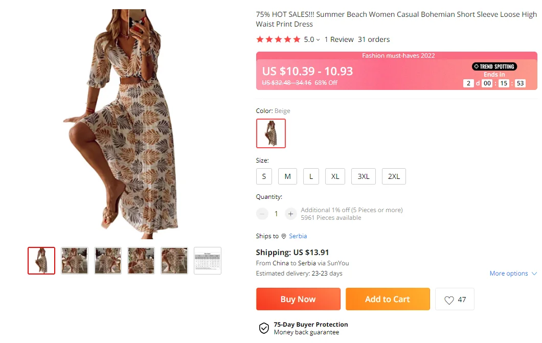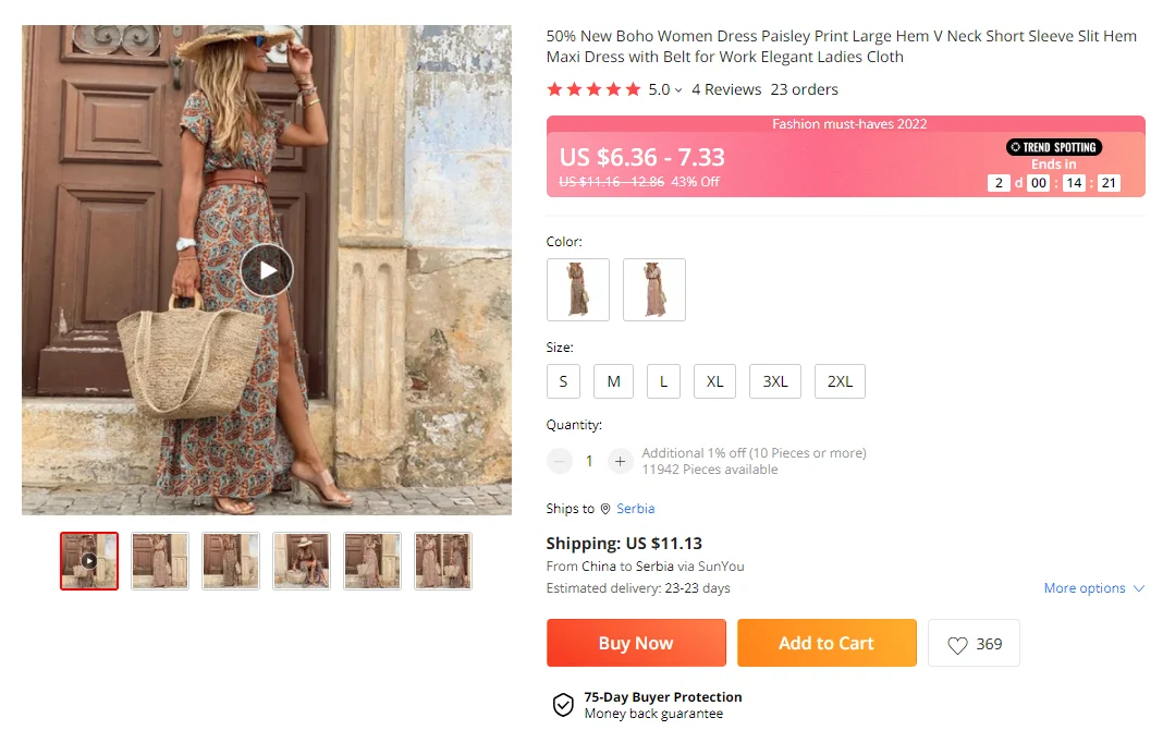 Solid color design makes the dress simple and generous. Advanced design makes it very suitable to wear to attend a party or banquet.
