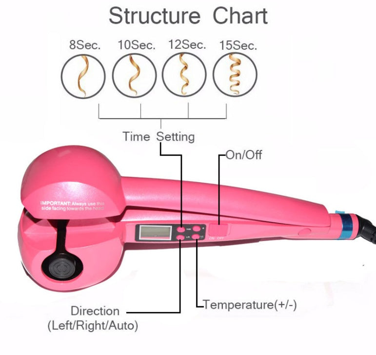 There are 3 timer settings with audio beep indicator .These different settings will give different curl effects. the longer the time the hair is held inside the curl chambe, the more defined the curl will be. But results will also wary sccording to hair type . Use the following as a guide.