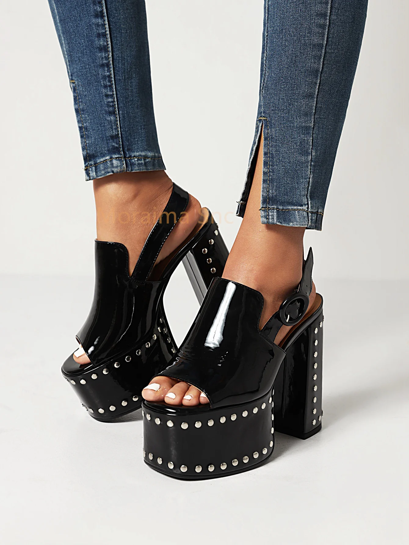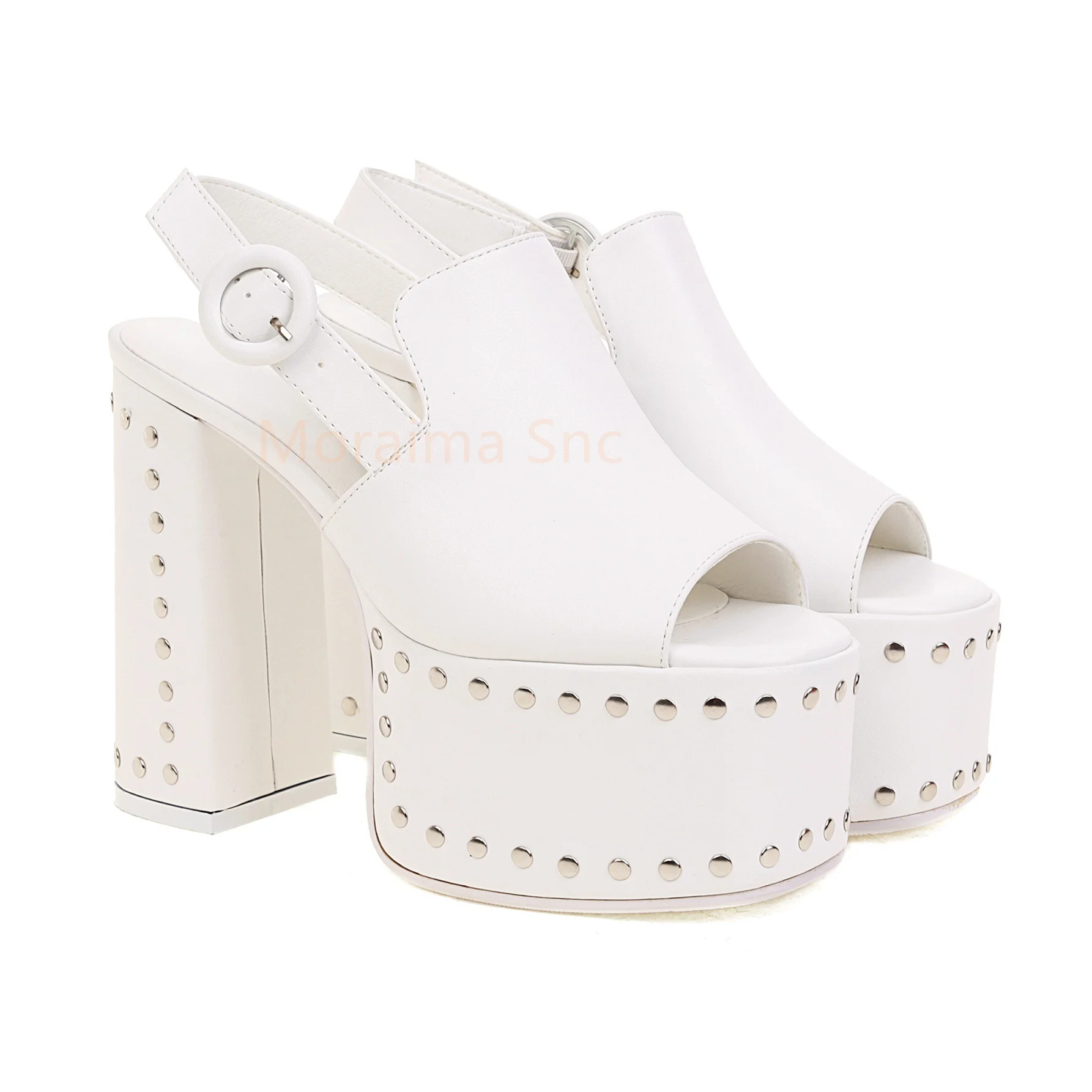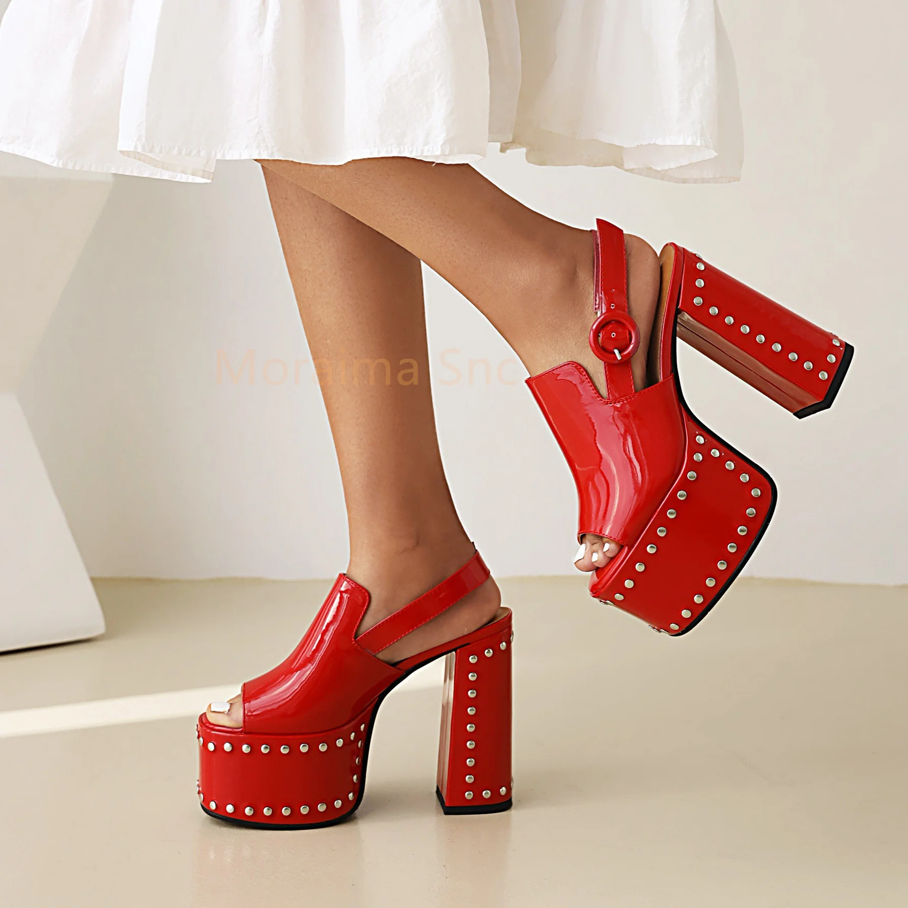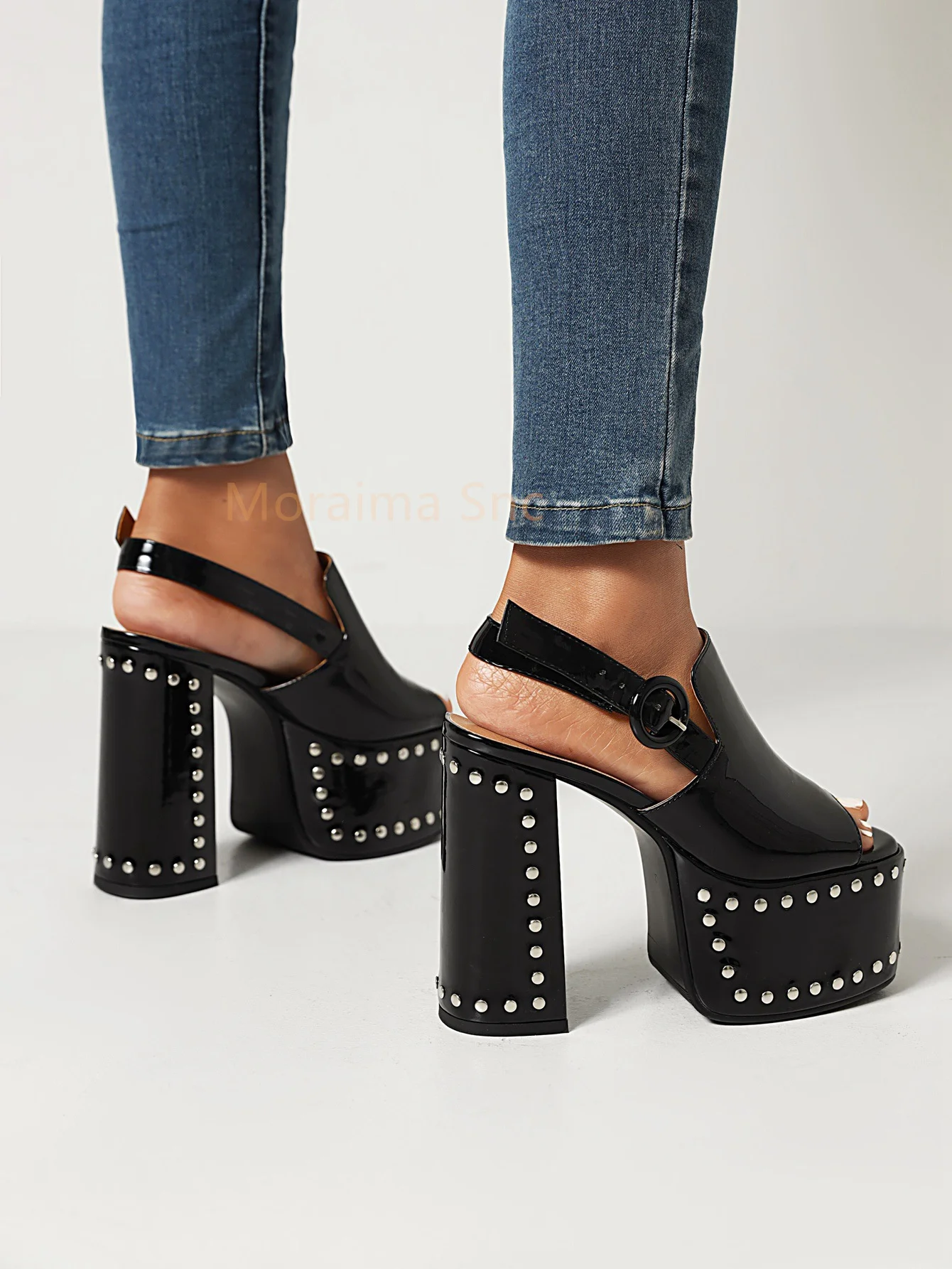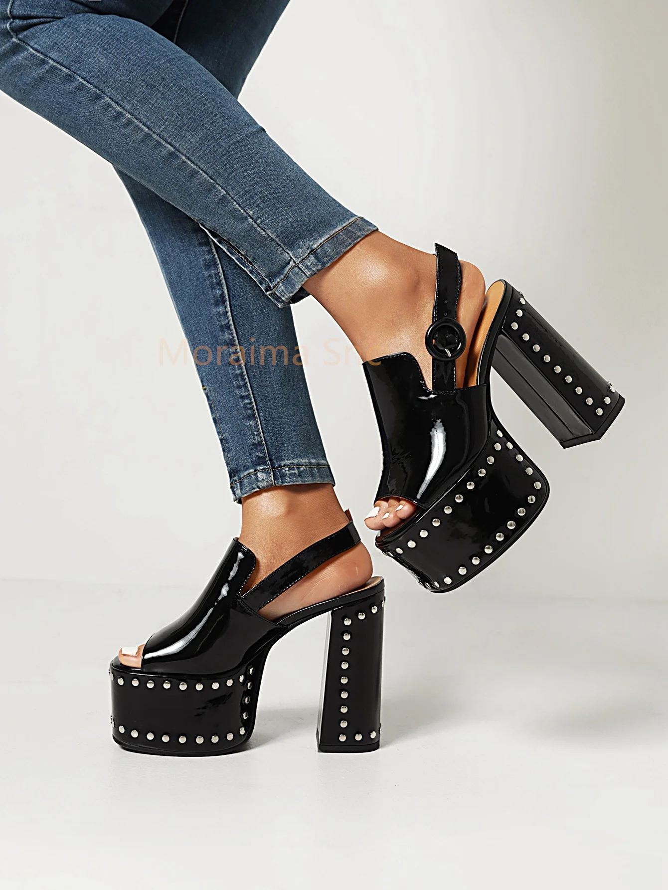 Chunky Heel Peep Toe Sandals for Women Rivet Platform High Heels Back Strap Female Nightclub Catwalk Women's Shoes Summer