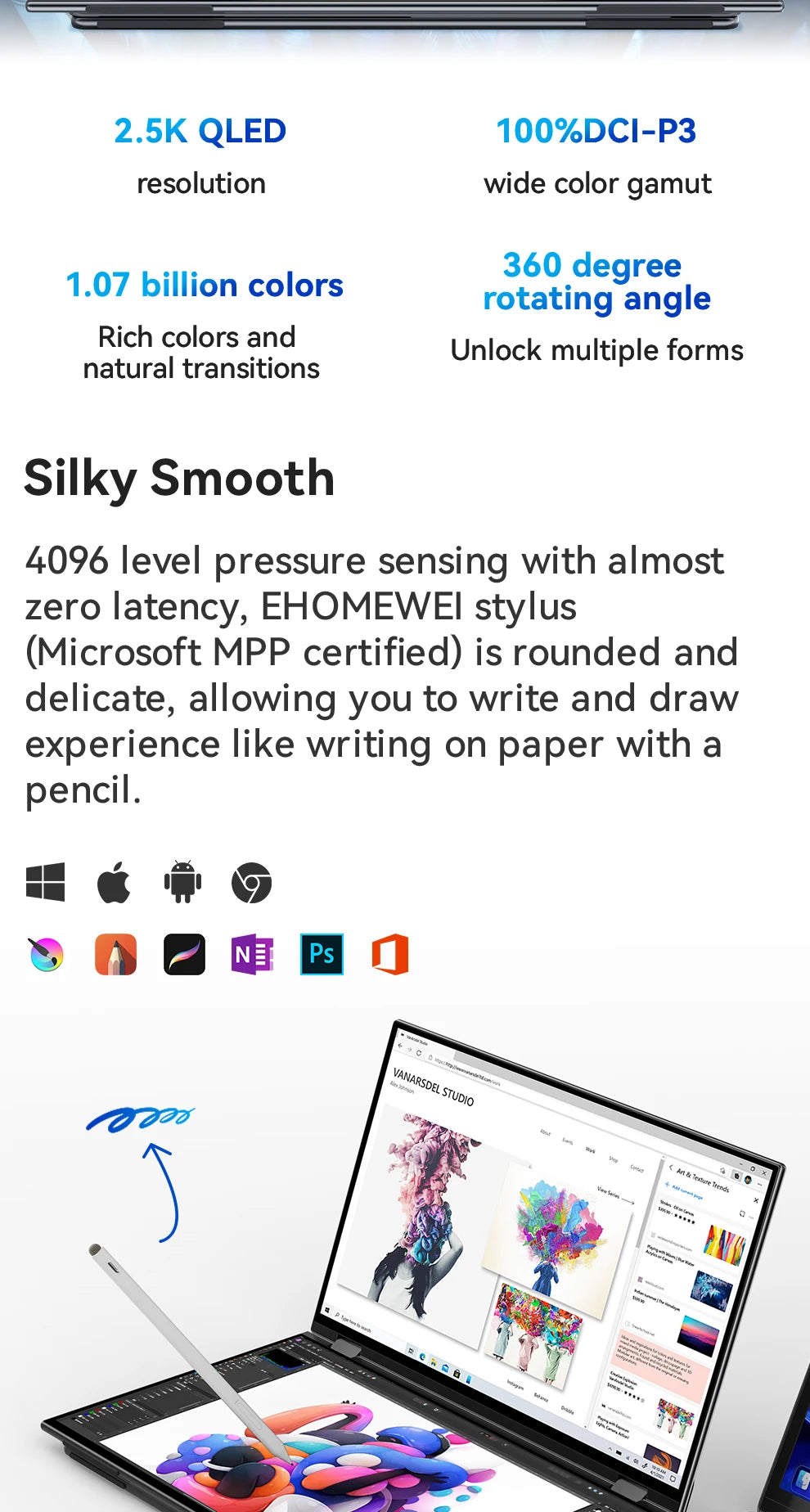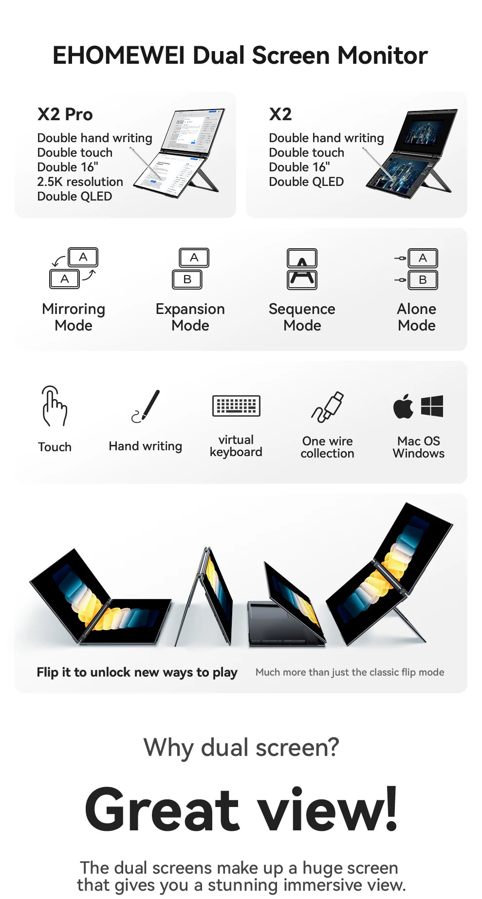 EHOMEWEI Dual Screen Portable Monitor X Series Drive-free Phone-touch FHD 2K 15.6“ 16“ For Laptop Windows Macbook