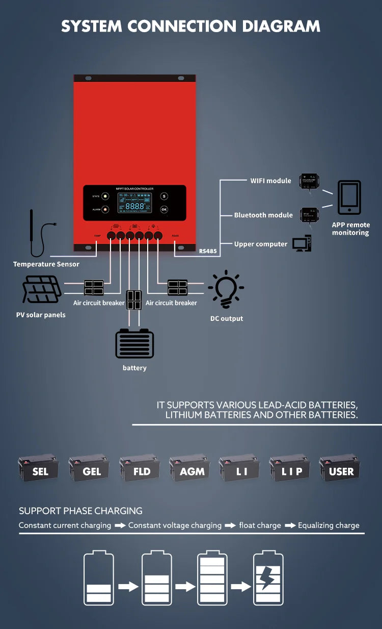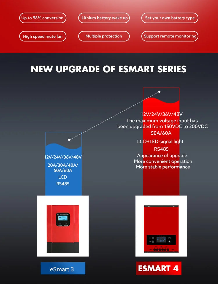 Intelligent MPPT Solar Charge Controller eSmart 60A Panel Charger Regulateur Lithium Battery 12V 24V 36V 48V With Wifi App