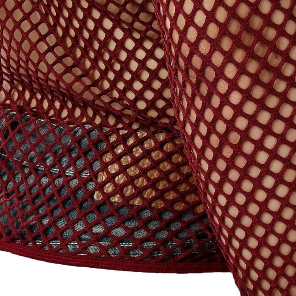 Men's Personality Coquettish Hollow Mesh Street Fashion Sheer Long Sleeve Shirt