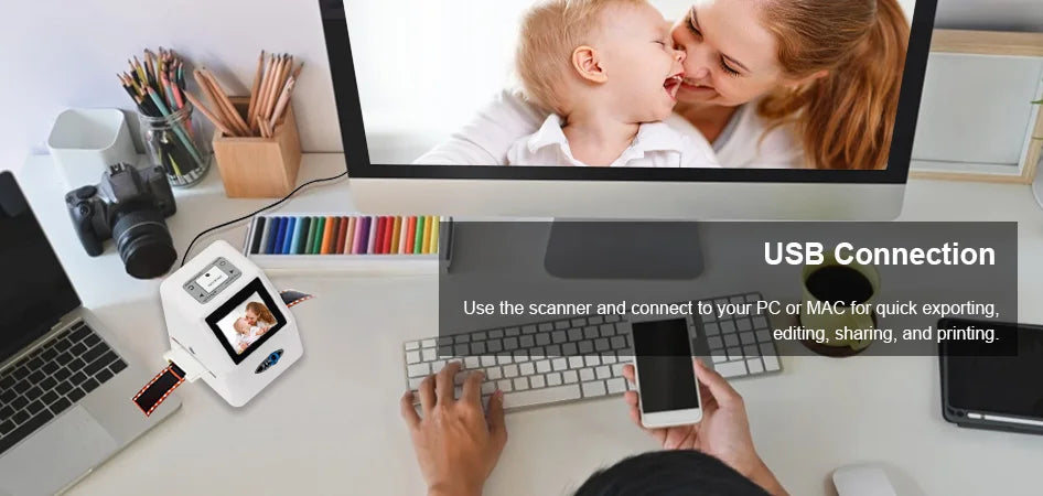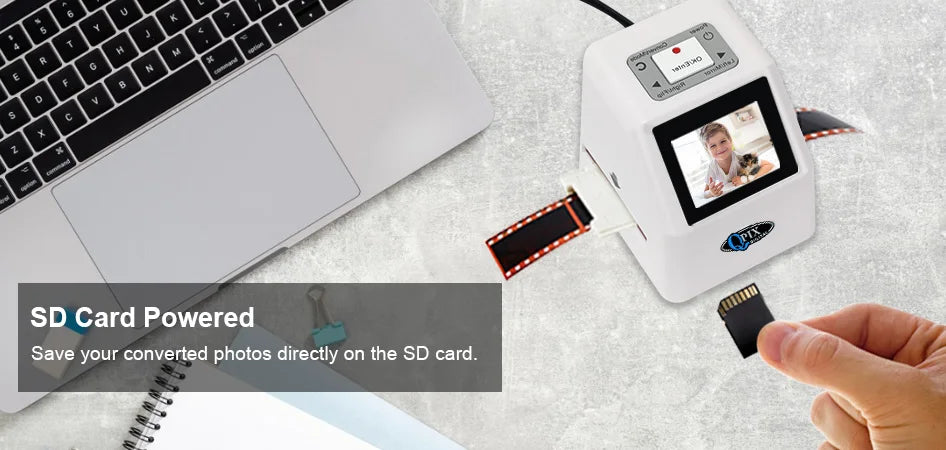 QPIX 22 MP 35mm Portable Film Scanners 135 110 126KPK Super 8 Negative Slide Holder Photo Scanner Film Digital Converter