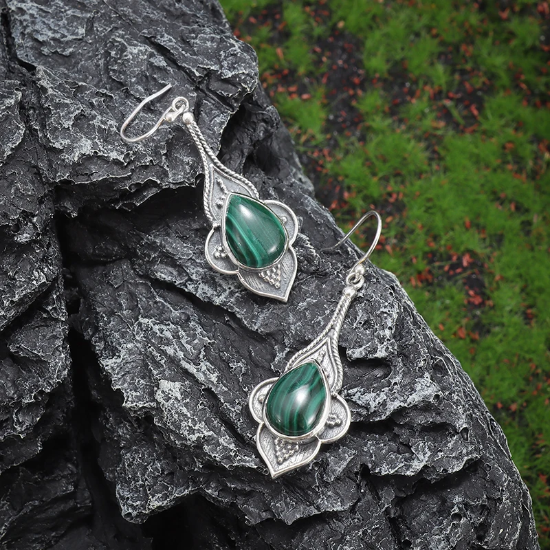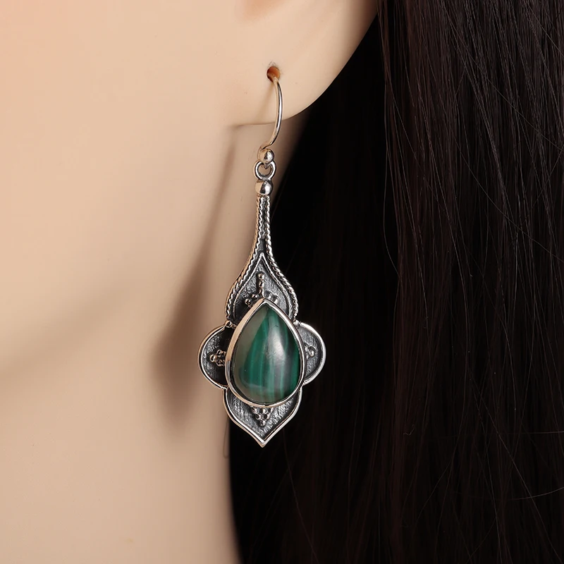 Retro Ladies Elegant Drop Green Imitation Jade Earrings Fashion Hypoallergenic Earrings Daily Banquet Party