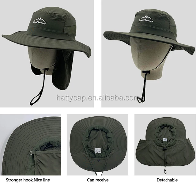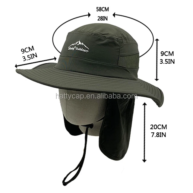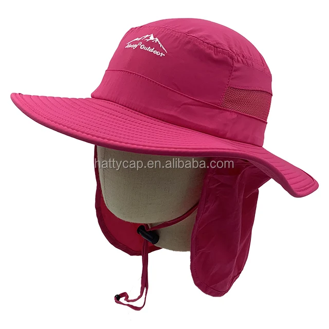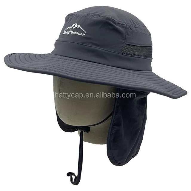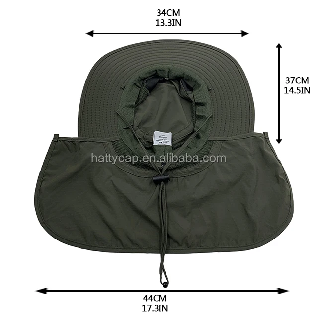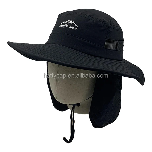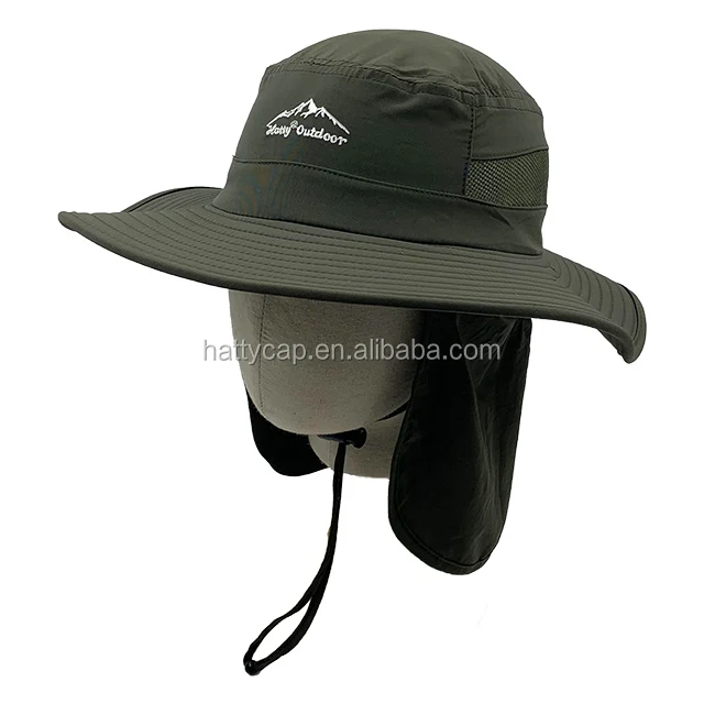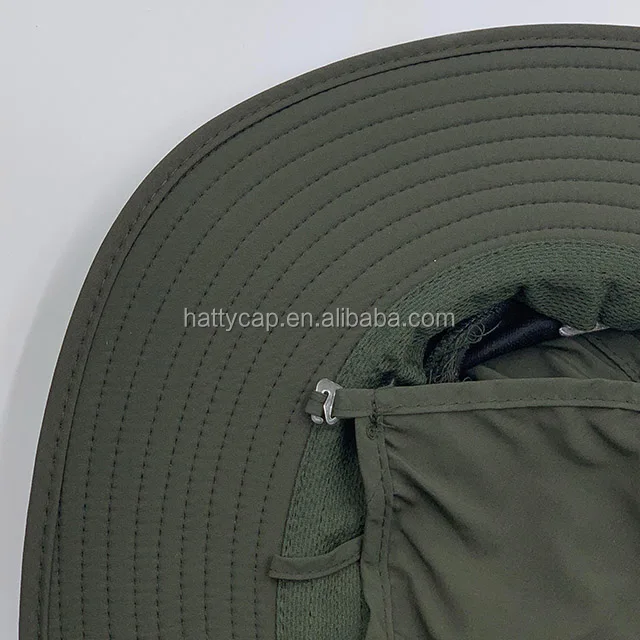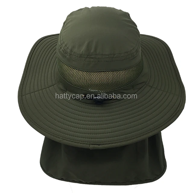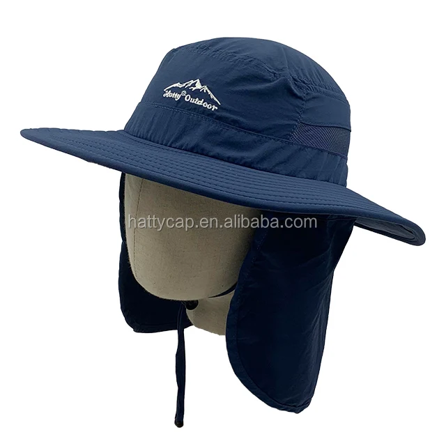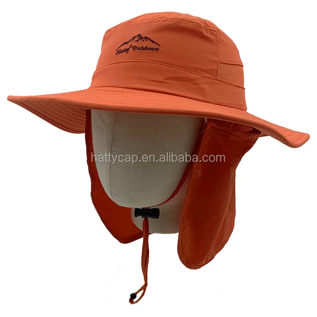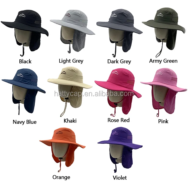 RTS Portable Polyester Outdoor Sunproof Pure Color Wide Brim with neck flap Hunting and Fisherman Hat bucket hat