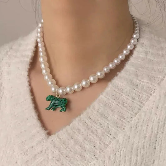 Minority Design Pearl Pink Leopard Light Luxury Fashion Short Necklace Sweet Cool Choker Collarbone Chain Female All-Match