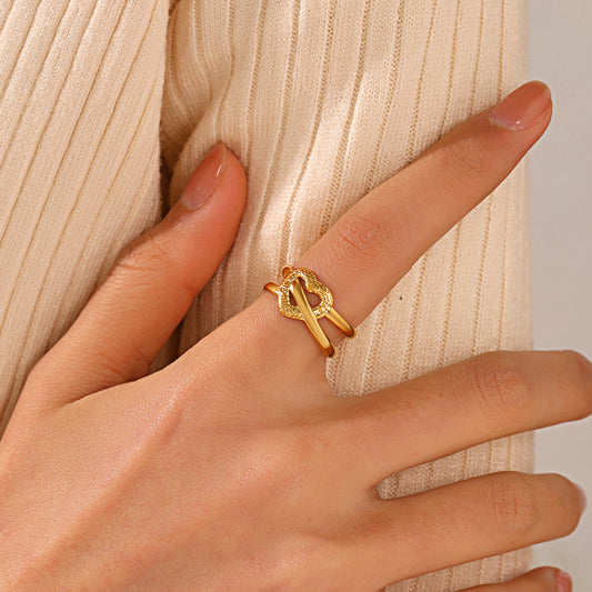 European And American Fashion 18K Gold-plated Popular Stainless Steel Love Heart-shaped Ring