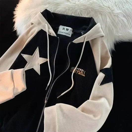 American Retro Patch Star Corduroy Jacket For Men And Women Y2k Streetwear Gothic Street Fashion Relaxed Lazy Cardigan Sweater