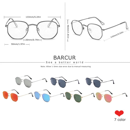 BARCUR Sunglasses Men Women Brand Design UV400 Mirror Male Sun Glasses Retro Mirror glassses 22mm Vintage Eyewear Accessories