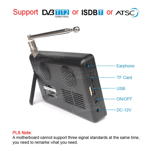2025 Pocket TV D5 5 Inch DVB-T2 ATSC ISDB-T TDT Digital and Analog Mini Small Car Television Portable TV Support USB TF AC3