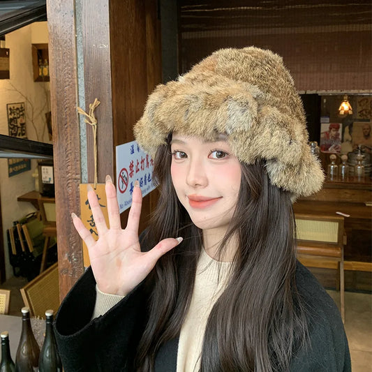New Real Rabbit Fur Fisherman's Hat For Women Winter Warm Rabbit Fur Caps Soft Natural Rabbit Fur Hats Female Fashion Fur Cap