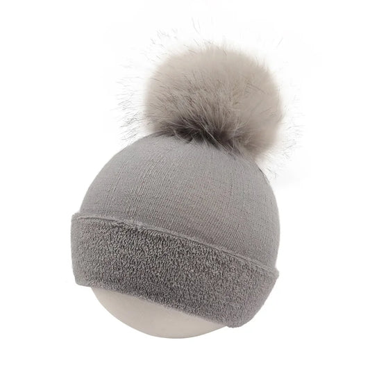 Adorable Winter Pom Pom Beanies for Babies Soft Warm Knitted Hats with Faux Fur Ball Infant Caps Cozy Solid Color Headwear
