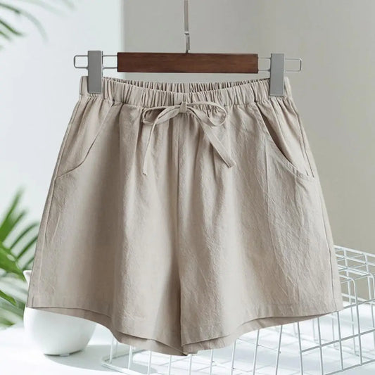Women Drawstring Casual Short Pants High Waist Solid Color Pockets Thin Linen Wide Leg Women Casual Shorts Outdoor Streetwear