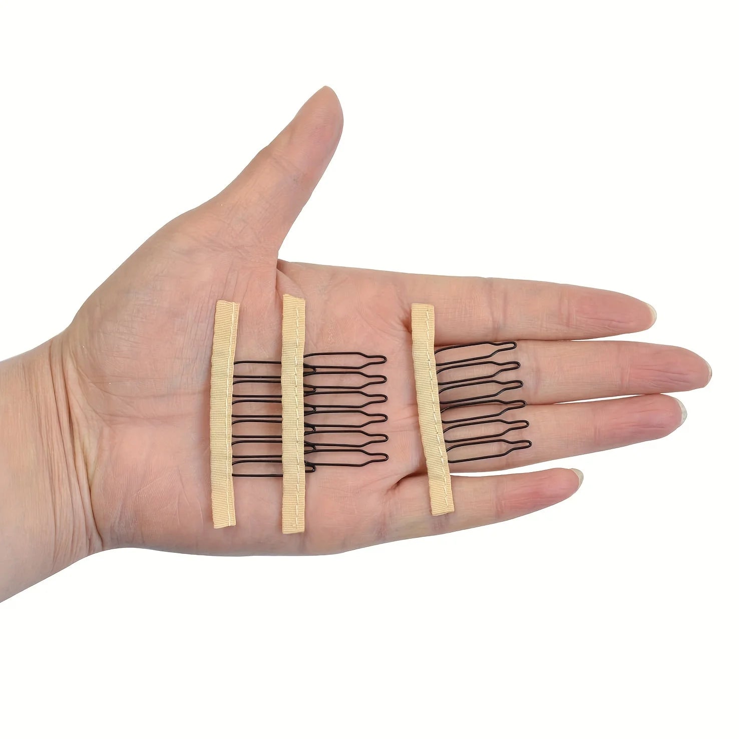 10/20/50Pcs Wig Combs To Secure Wig 6-Teeth Wig Comb Wig Clips With Cloth For Making Wig Caps Steel Material Clips Combs ForHair