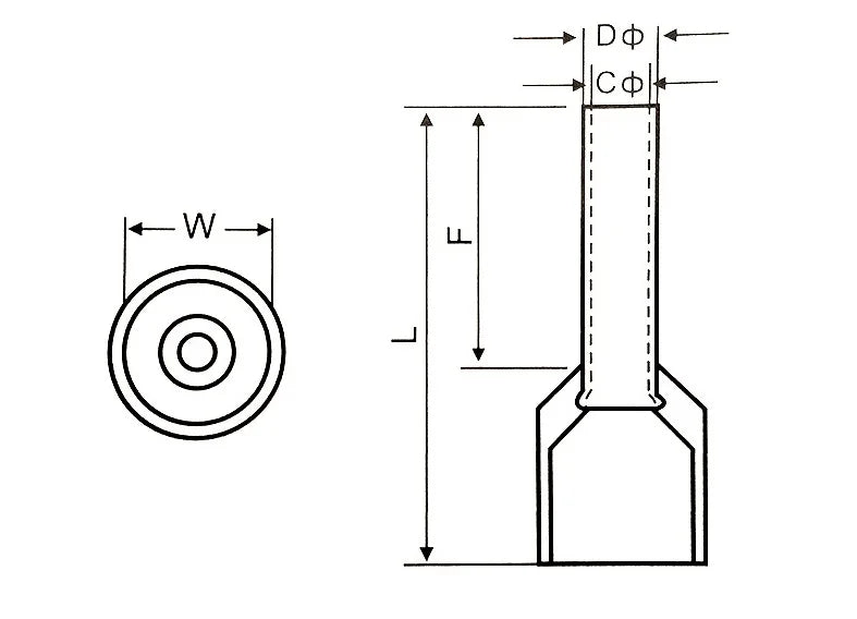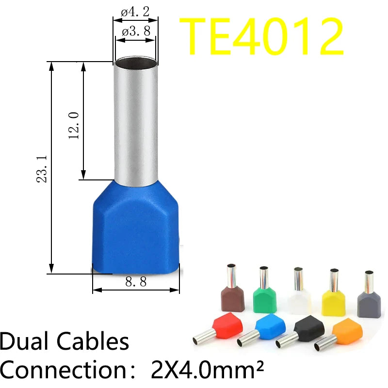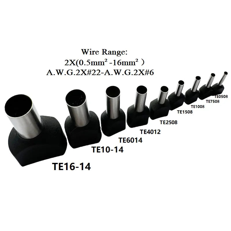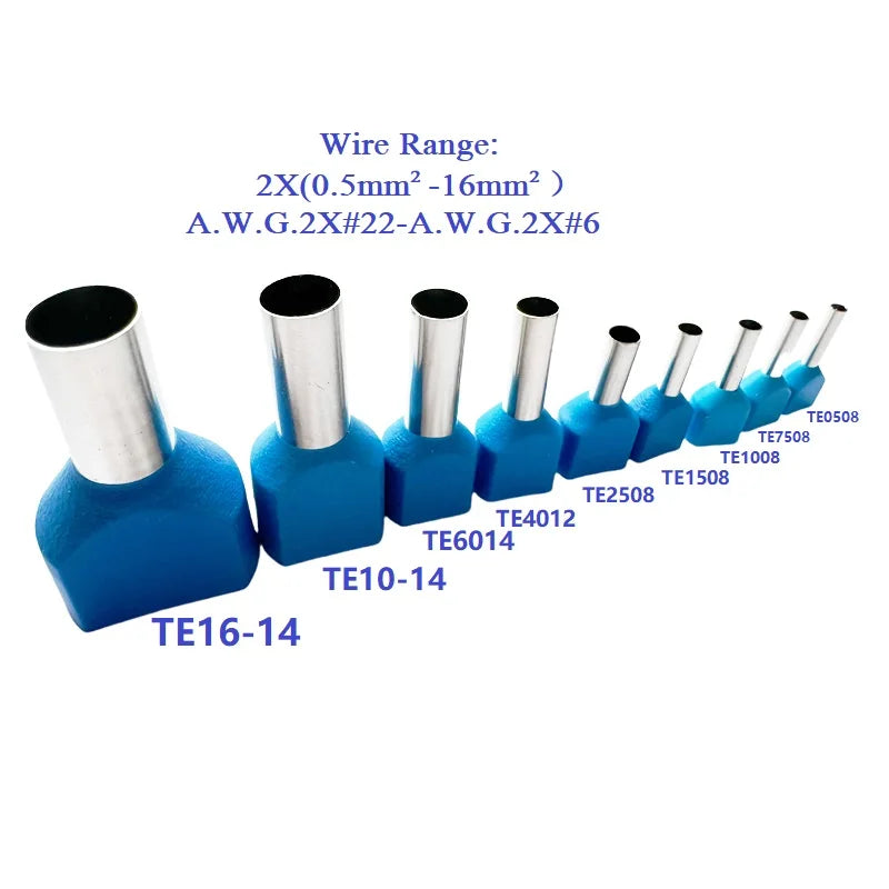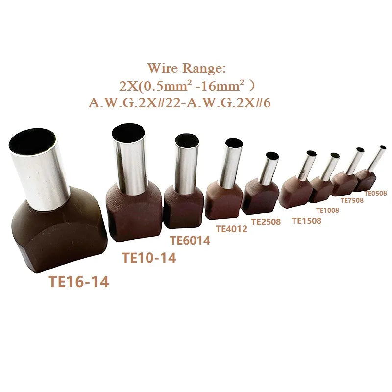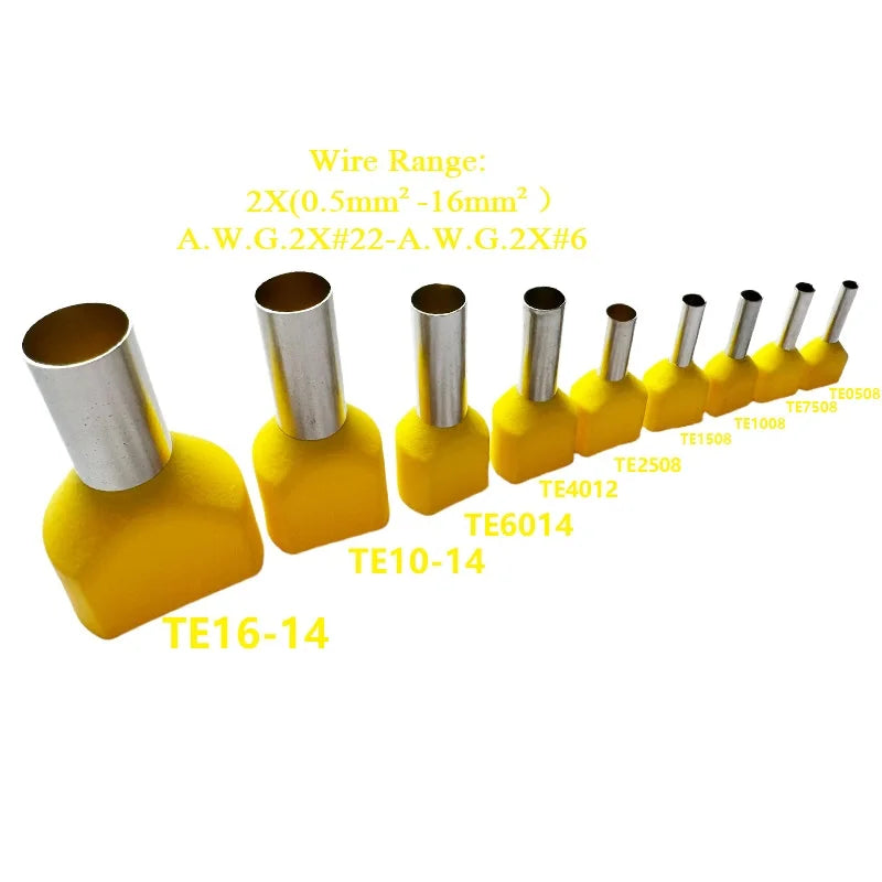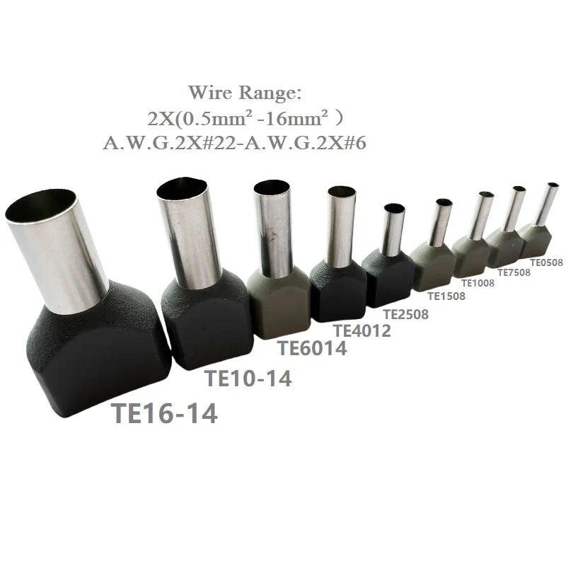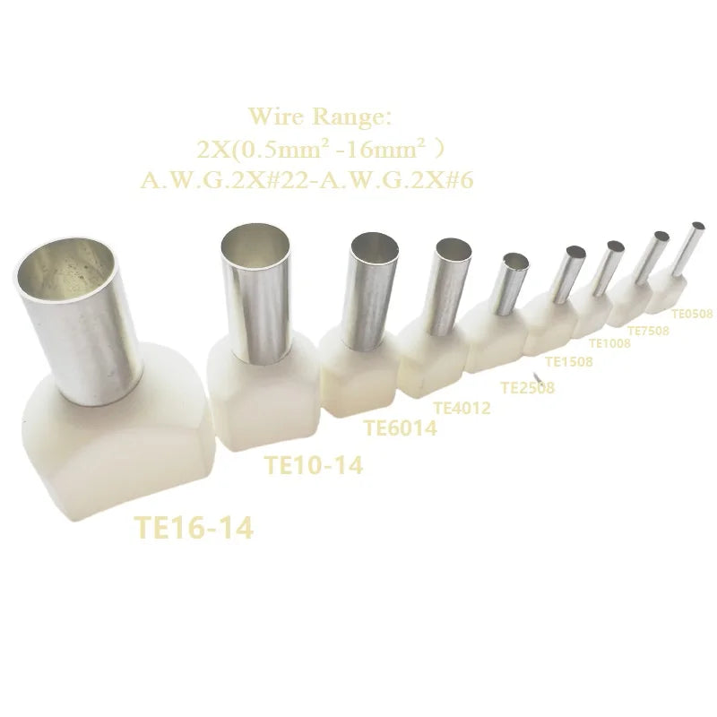 100PCS 2x(0.5mm²~16mm²) Dual Wires Copper Insulated Ferrules Cord End Crimp Terminal Electrical Cable Lug TE2508 AWG 2X(#22-#6)
