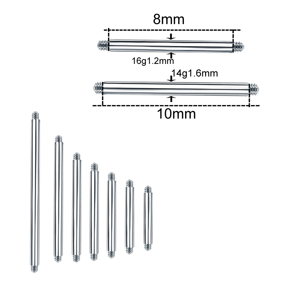 100pcs/lot Steel Straight Barbell Ring Earring Studs Tongue Ring Bar Piercing Replacement 14G 16G Accessories Rod Only No Ends