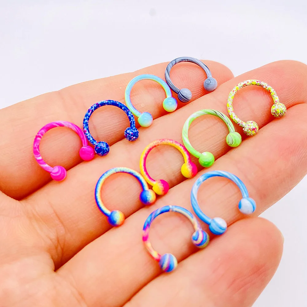 10Pc Surgical Steel Horseshoe Nose Septum Rings Piercing Jewelry Paint Barbell Tongue Piercing Nipple Eyebrow Nail for Women