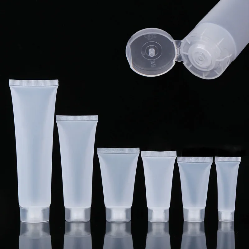 10Pcs 5-100ml Empty Frosted Cosmetic Soft Tubes w/ Flip Lids Matte Clear Plastic Containers Lotion Bottles For Hand Cream Makeup