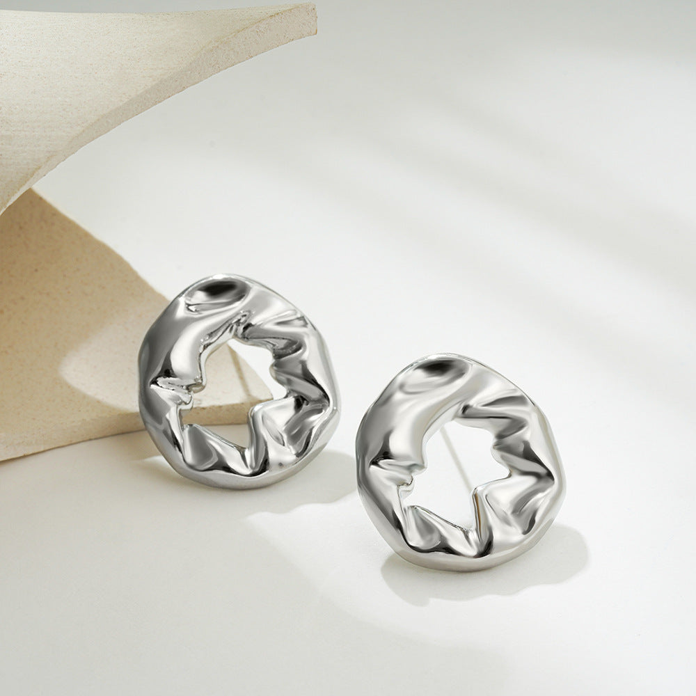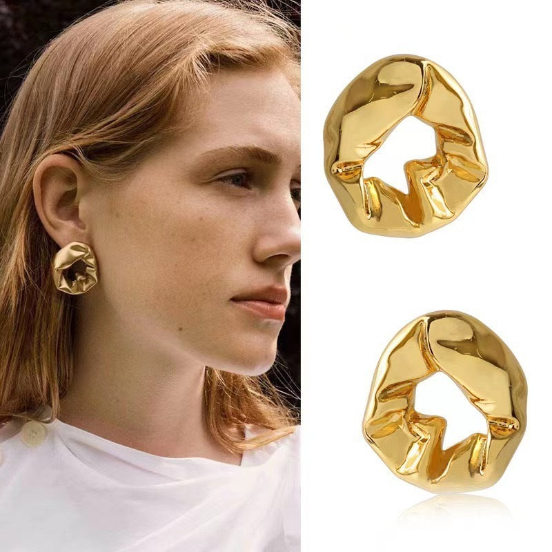18K Gold Balloon Fold Irregular Texture Simple Earrings